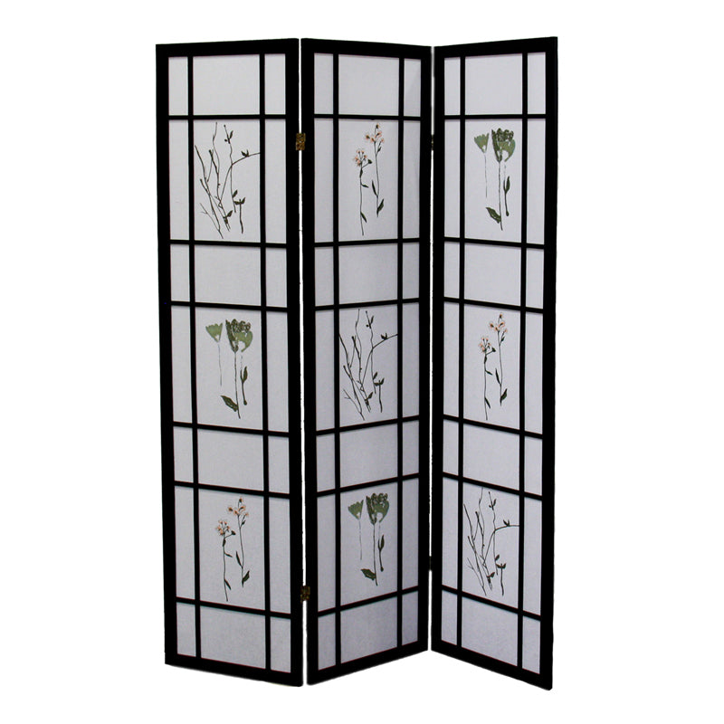 70" In Herbal Floral Decorative Print 3-panel Room Divider Black