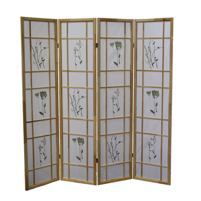 70" In Herbal Floral Decorative Print 4-panel Room Divider Natural