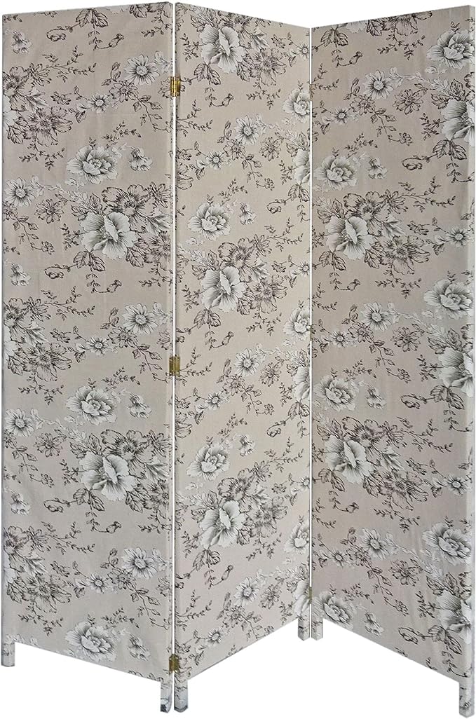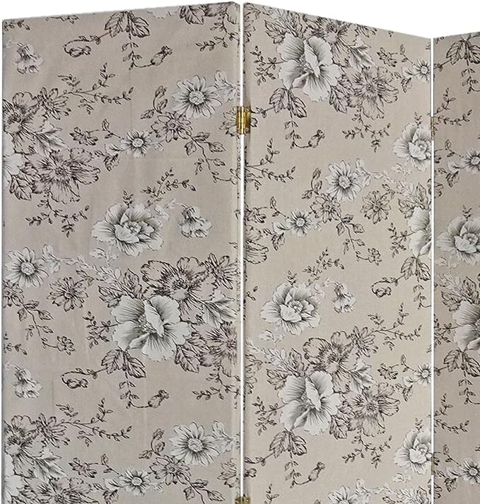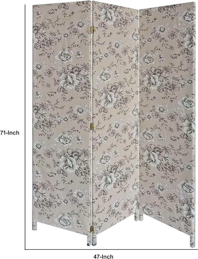 71 Inch 3 Panel Fabric Room Divider with Floral Print, Gray