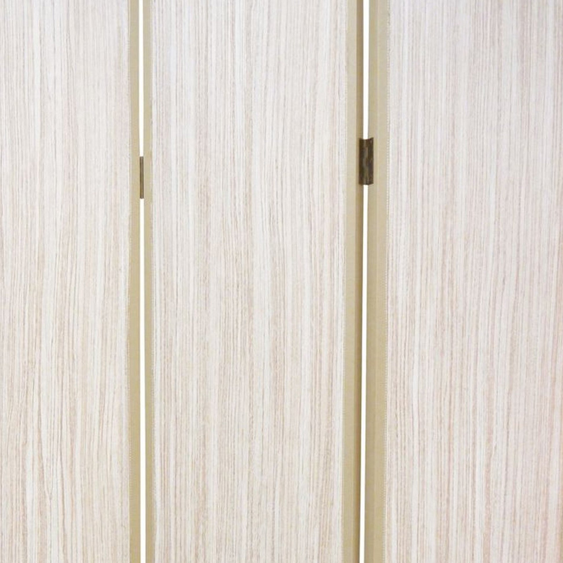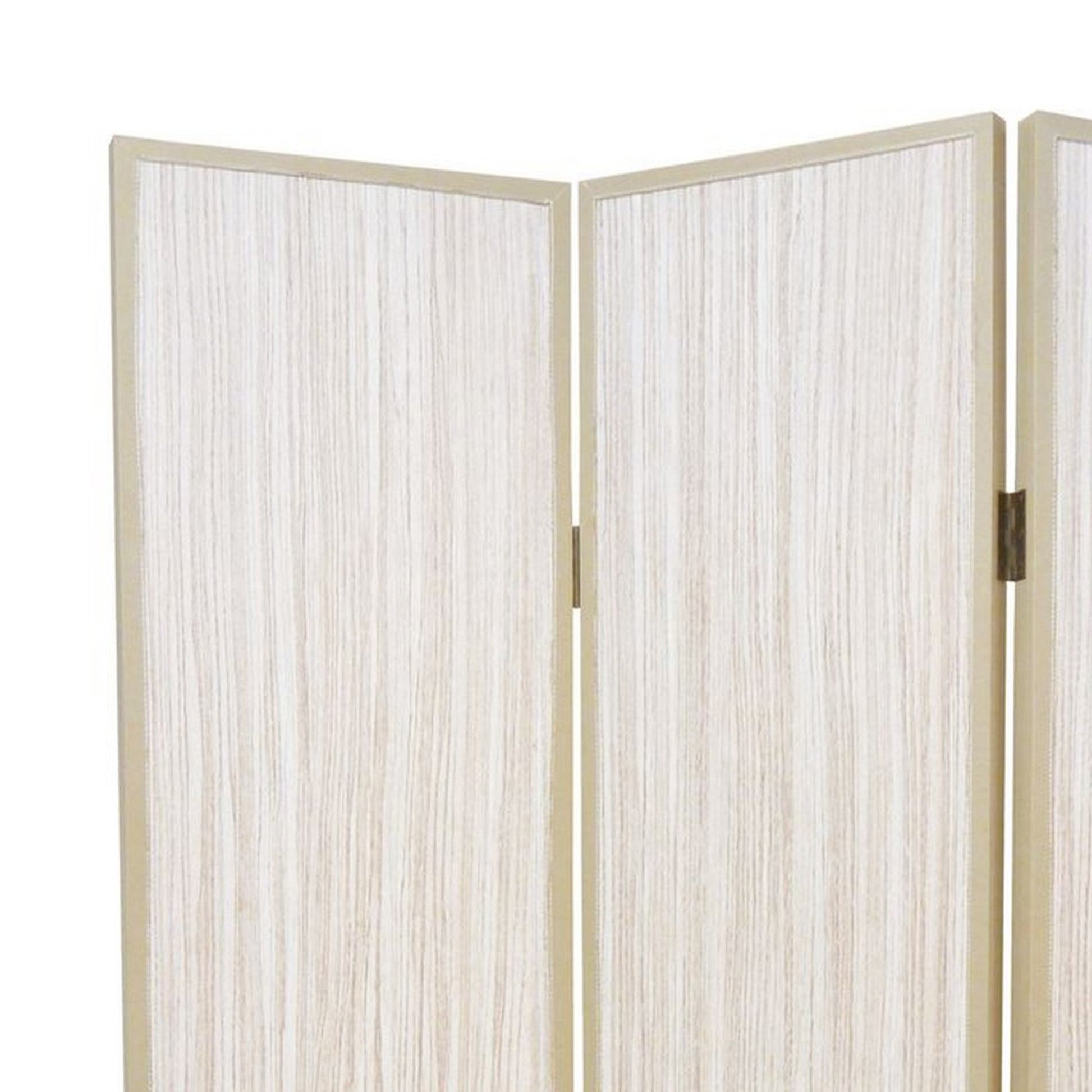 71 Inch Folding Screen Room Divider, 3 Textured Panels, Gray Leather Trim