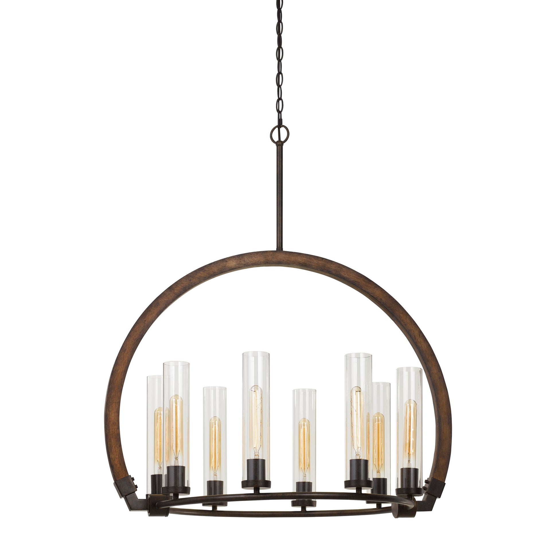 8 Bulb Chandelier With Arched Wooden And Metal Frame Brown And Bronze
