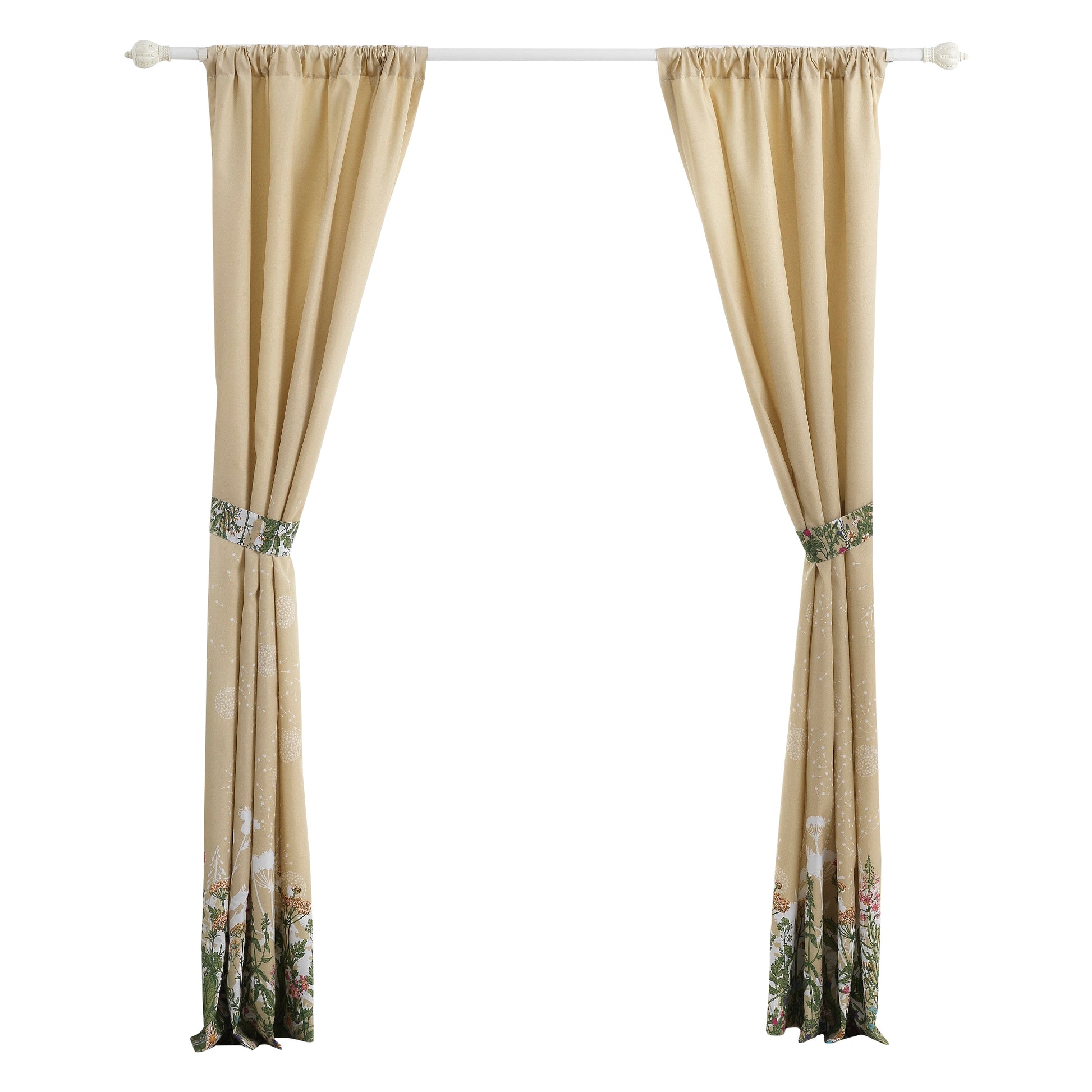 84 Inch Window Curtains Beige Microfiber Fabric Wildflower Print Design
