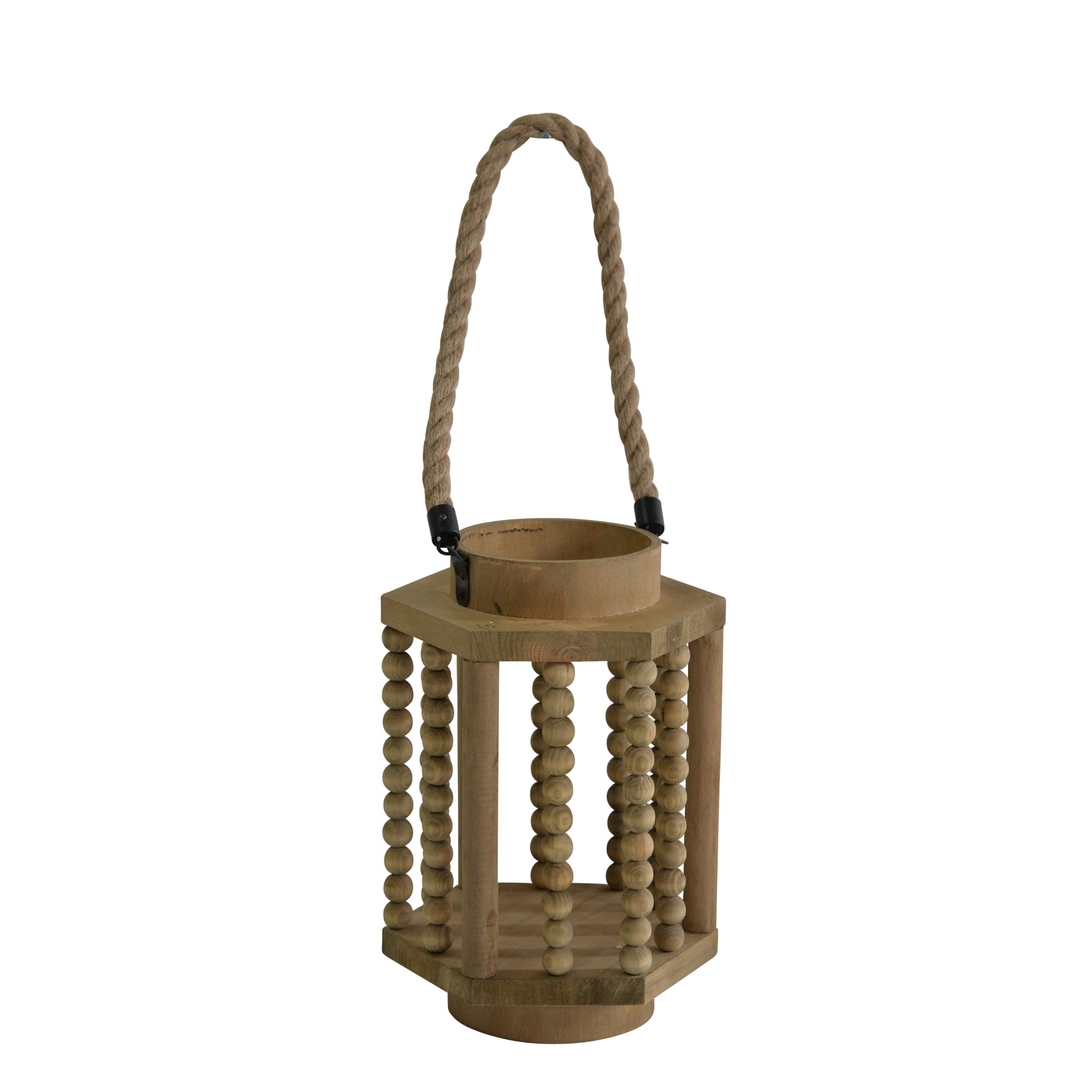 Abacus Design Hexagonal Wooden Lantern With Rope Hanger Rustic Brown