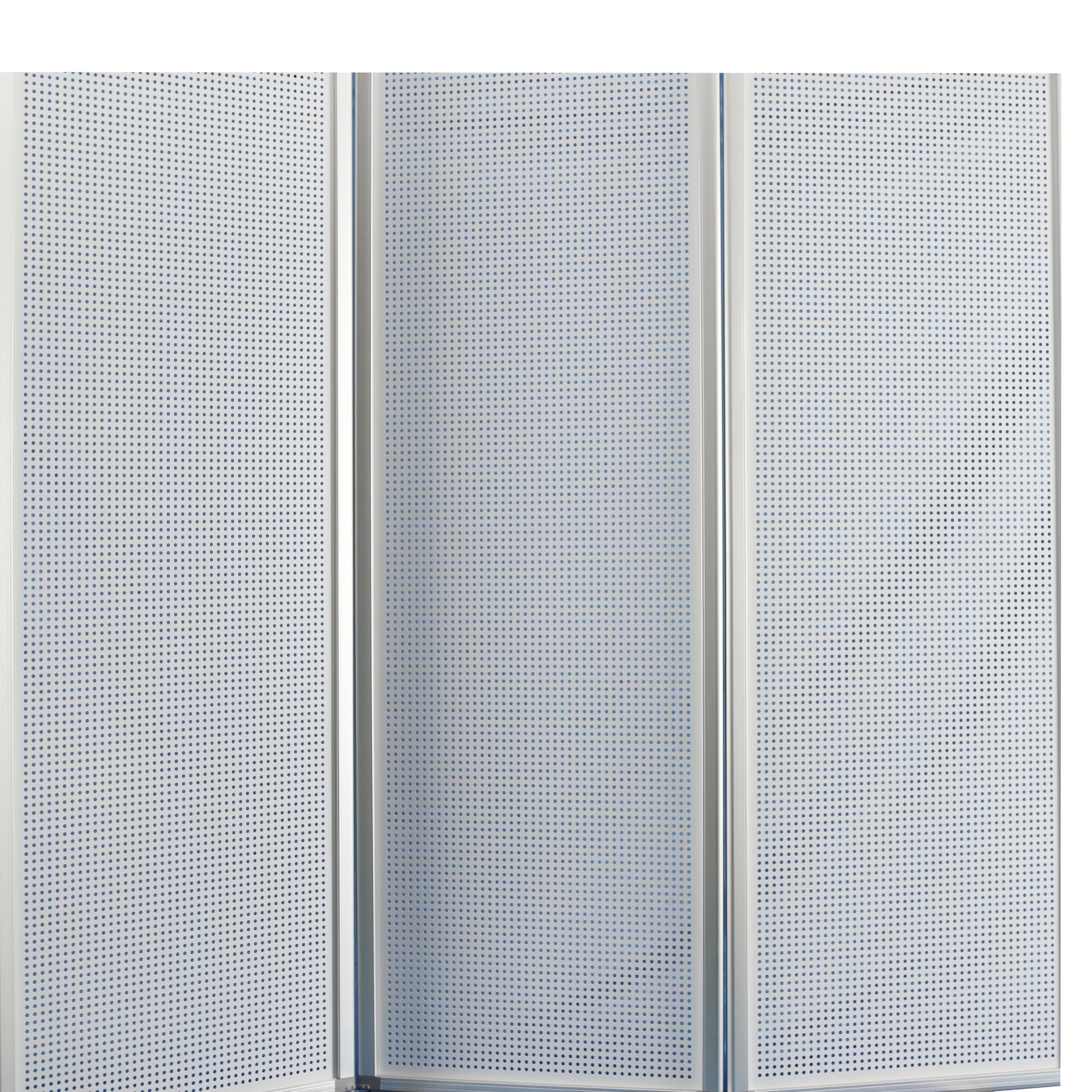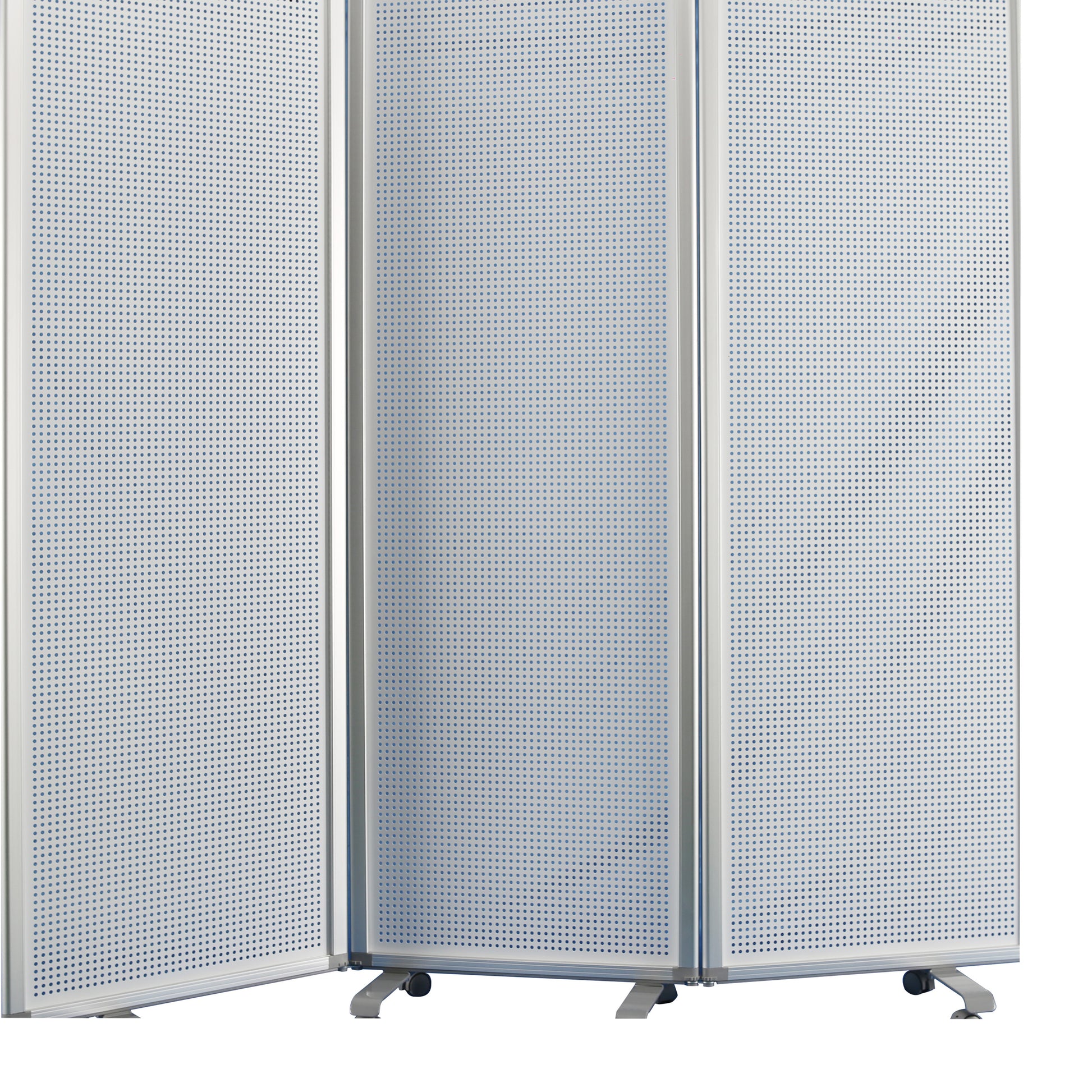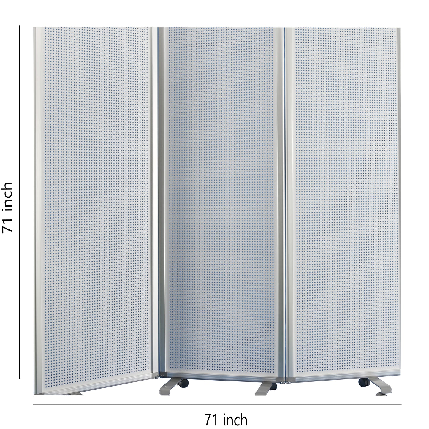 Accordion Style Metal 3 Panel Room Divider with Perforated Details, White