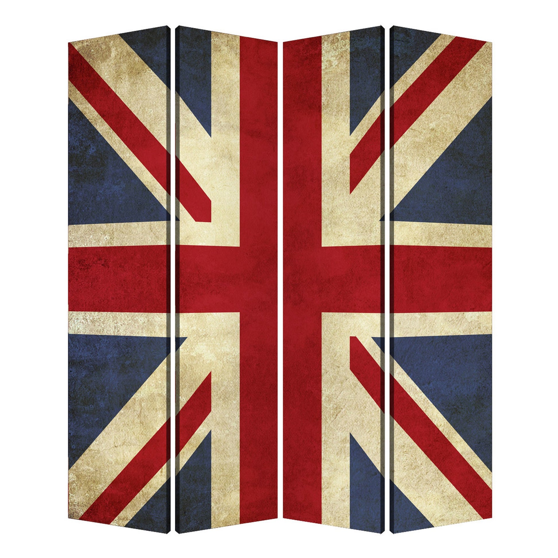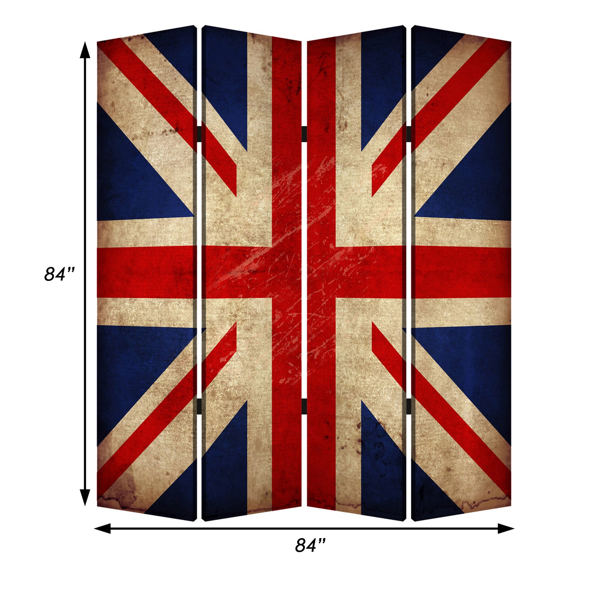 Alfie 71 Inch Folding Screen Room Divider, Union Jack Printing, 4 Panels
