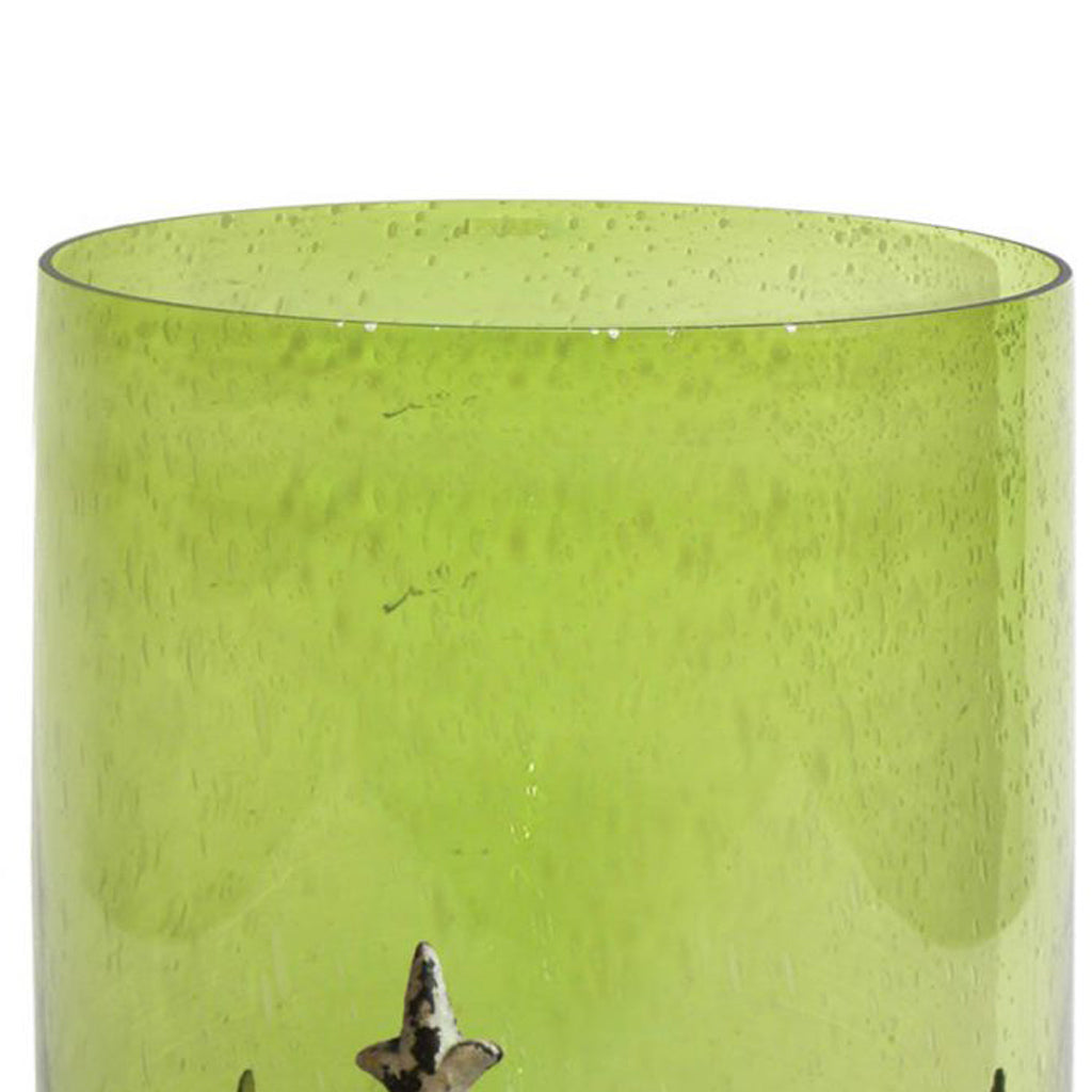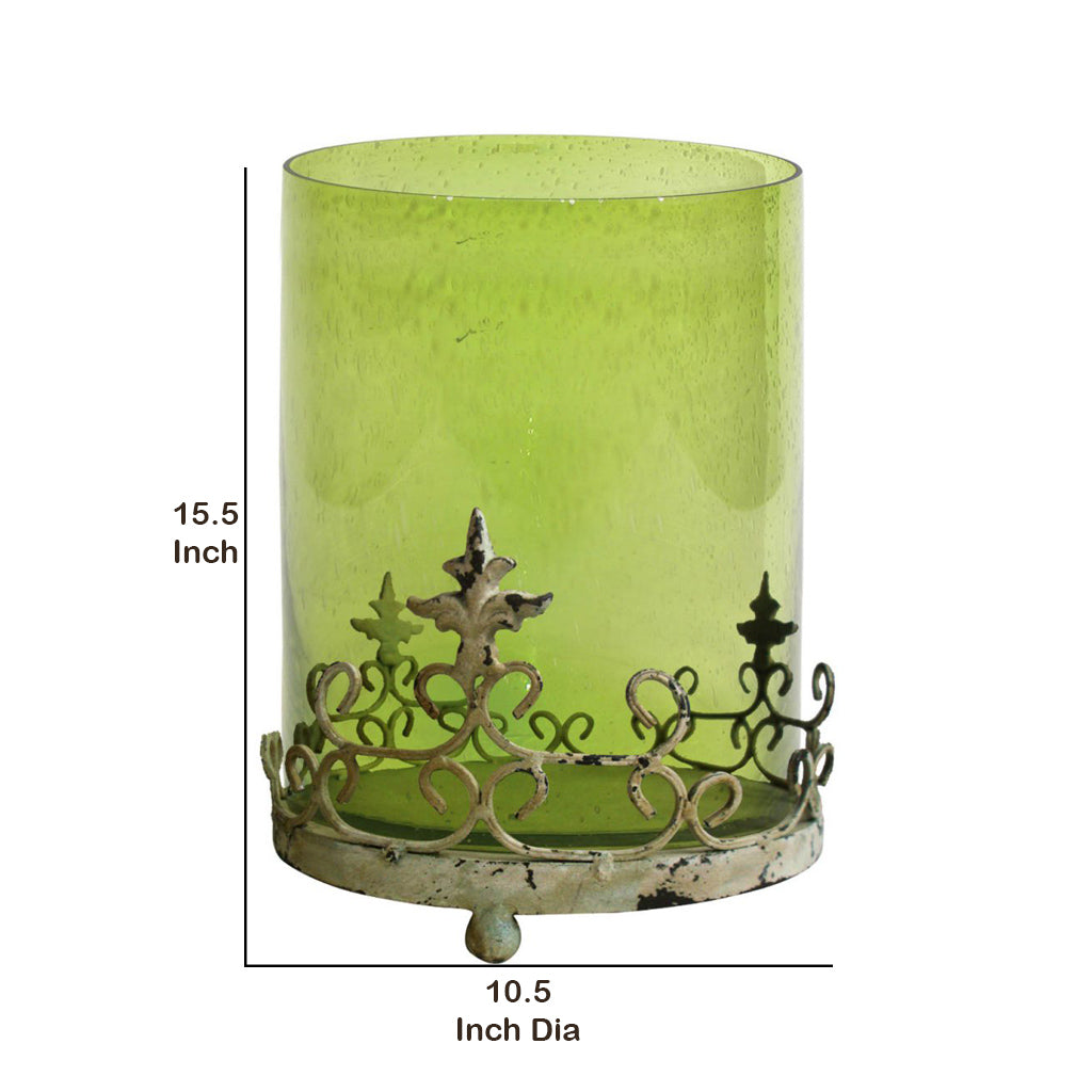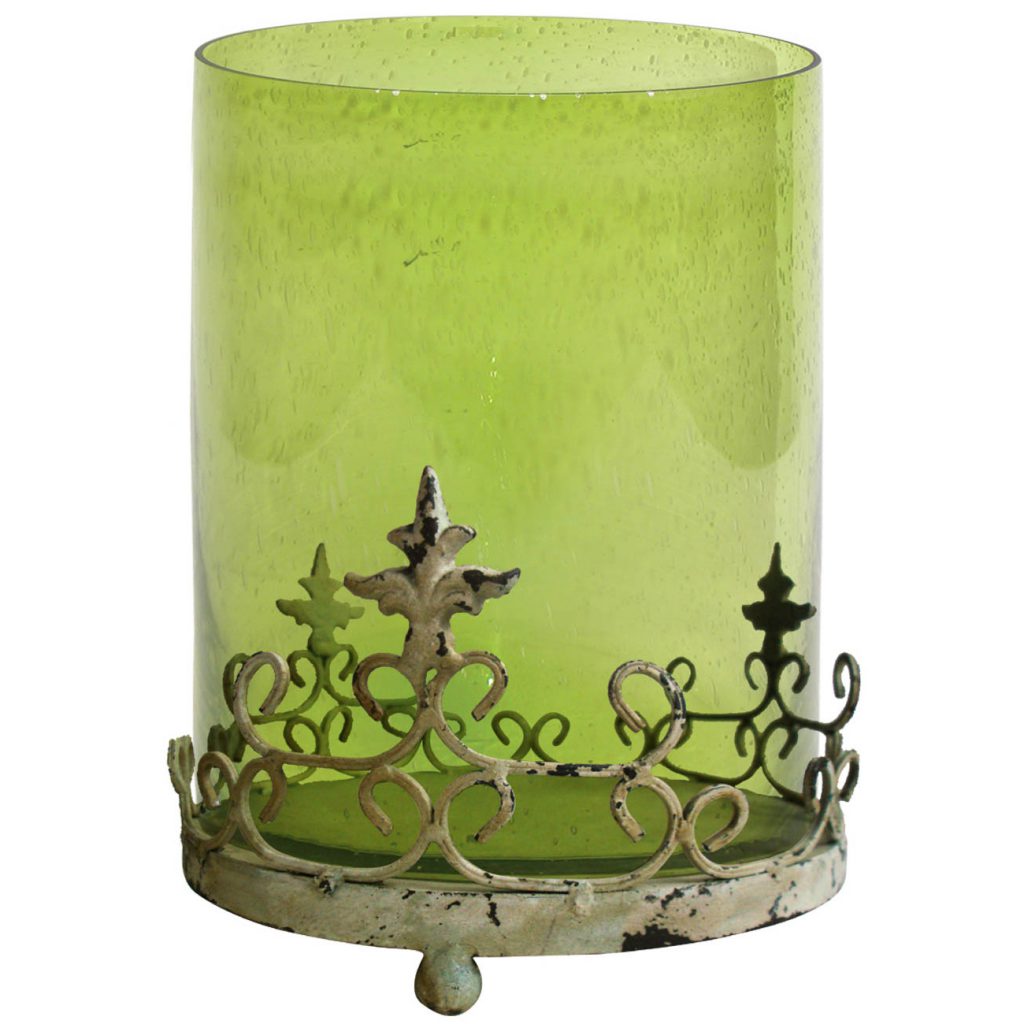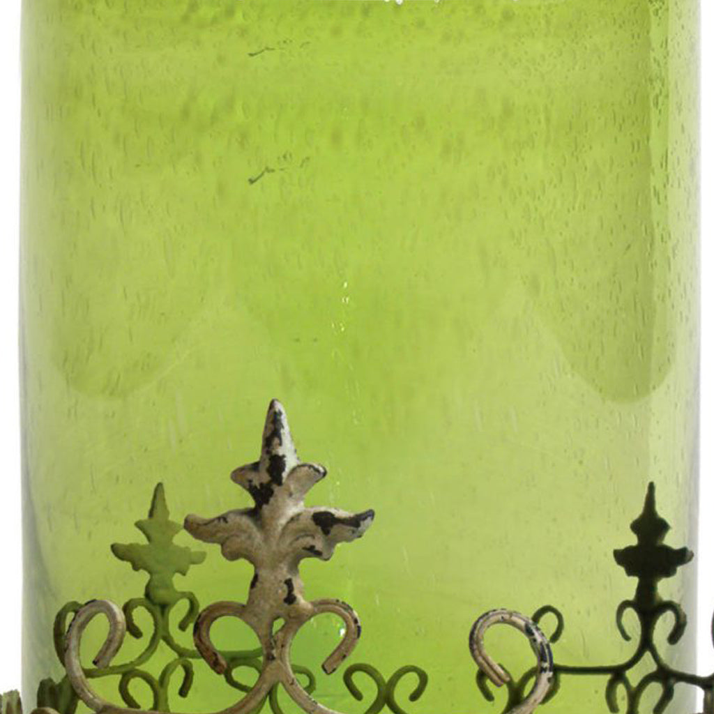 Antique Glass Shade Candle Holder With Metal Base Stand Green