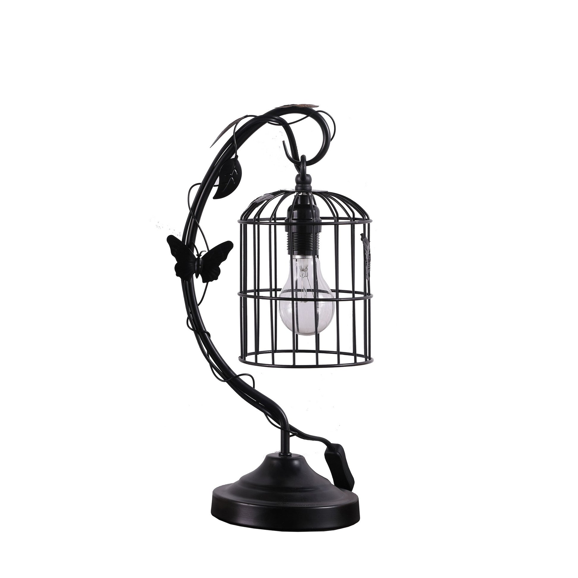 Arc Design Metal Table Lamp with Birdcage Shade Black