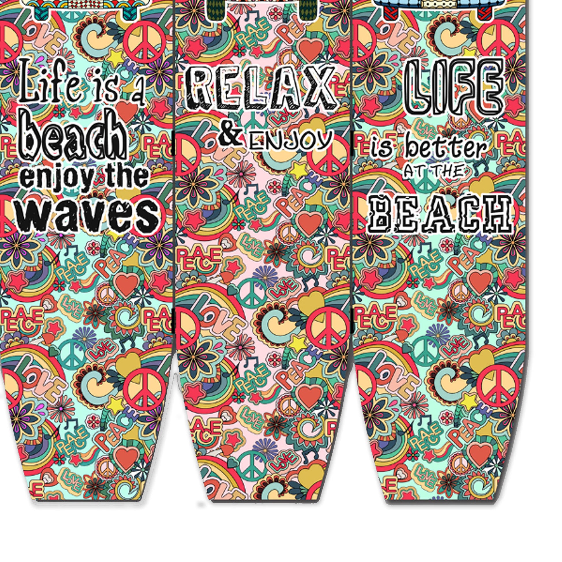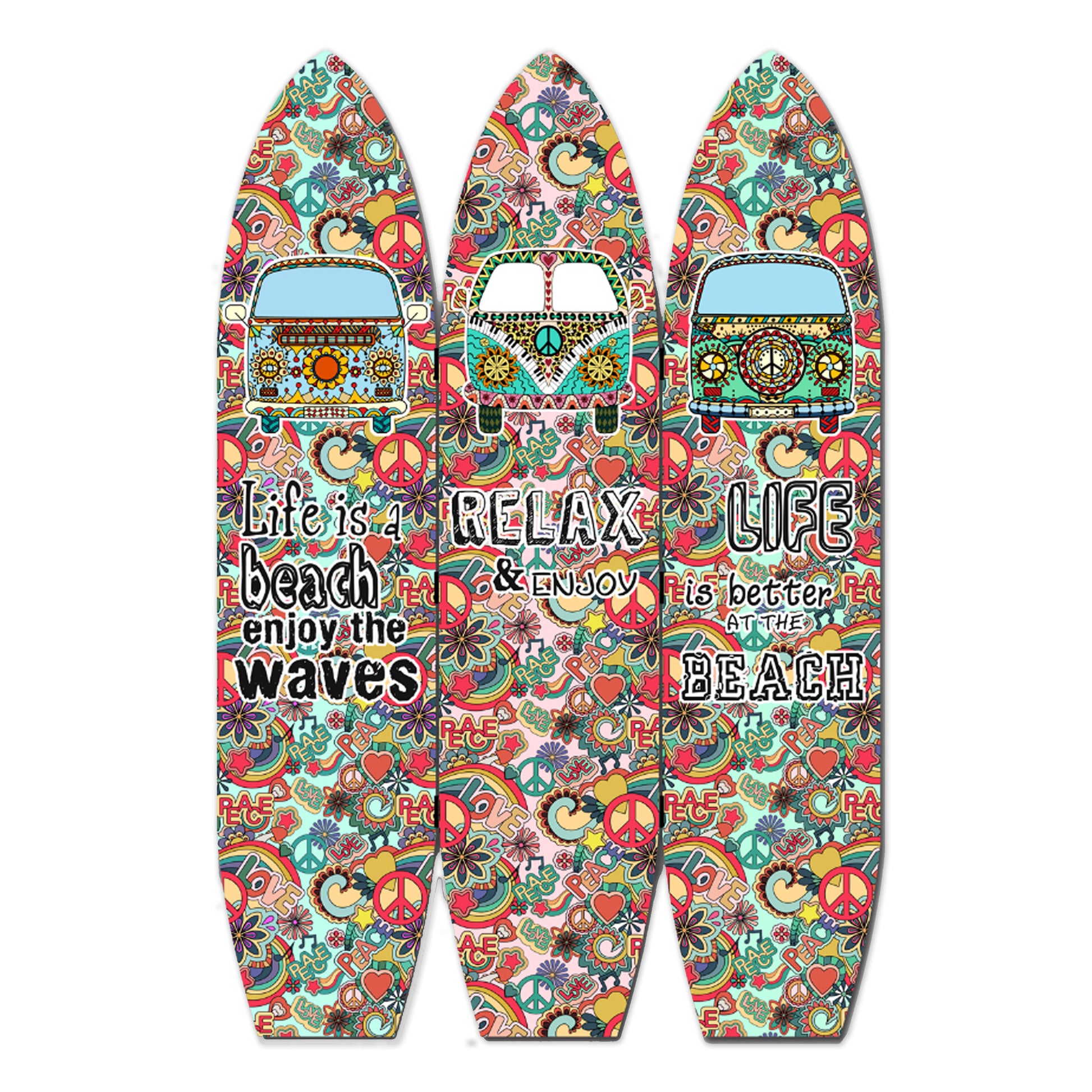 Need a break from your daily mundane chores, bring home this coveted contemporary style 3 panel room divider. Provided with a foldable mechanism, this wooden room divider comes in surfboard shape with beach themed typography in colorful hues. Incorporated with metal hinges, it will be a perfect addition to your existing decor setting.
