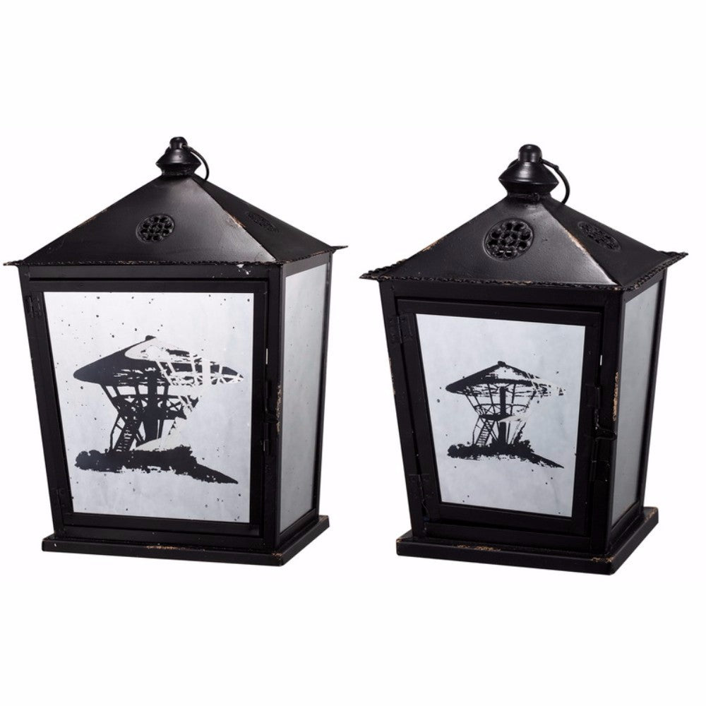 Beautifully Shaped Metal Candle Lanterns Set Of 2 Black