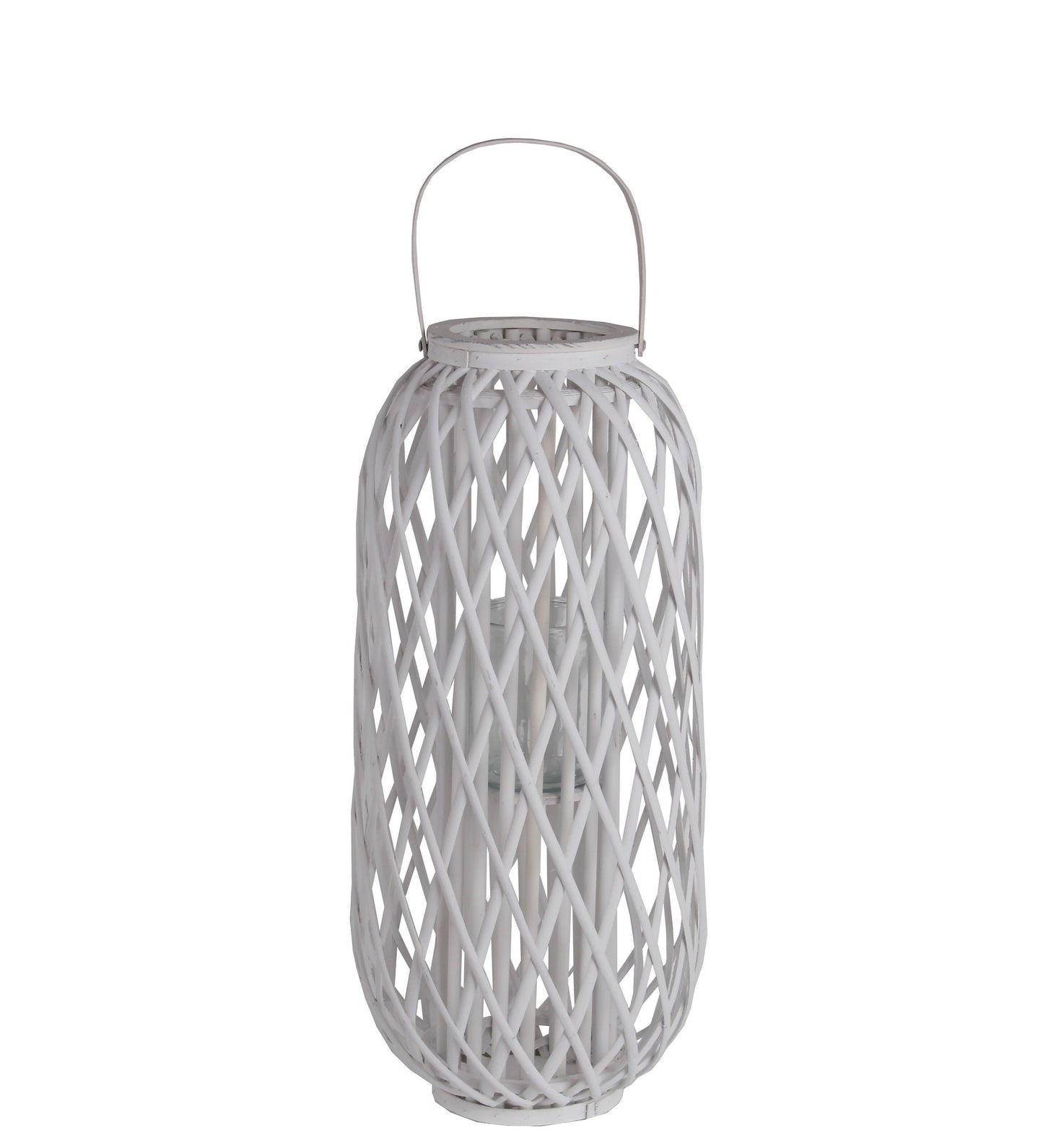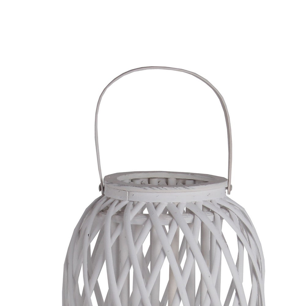 Bellied Shaped Bamboo Lantern With Open Lattice Design Medium White