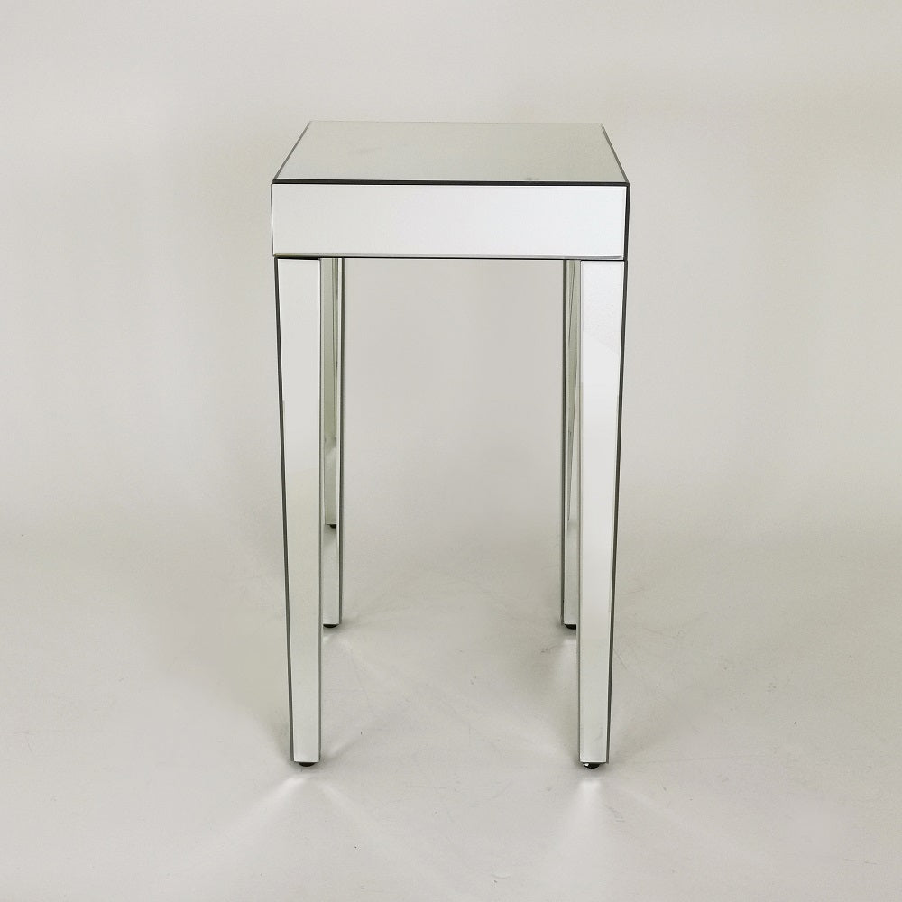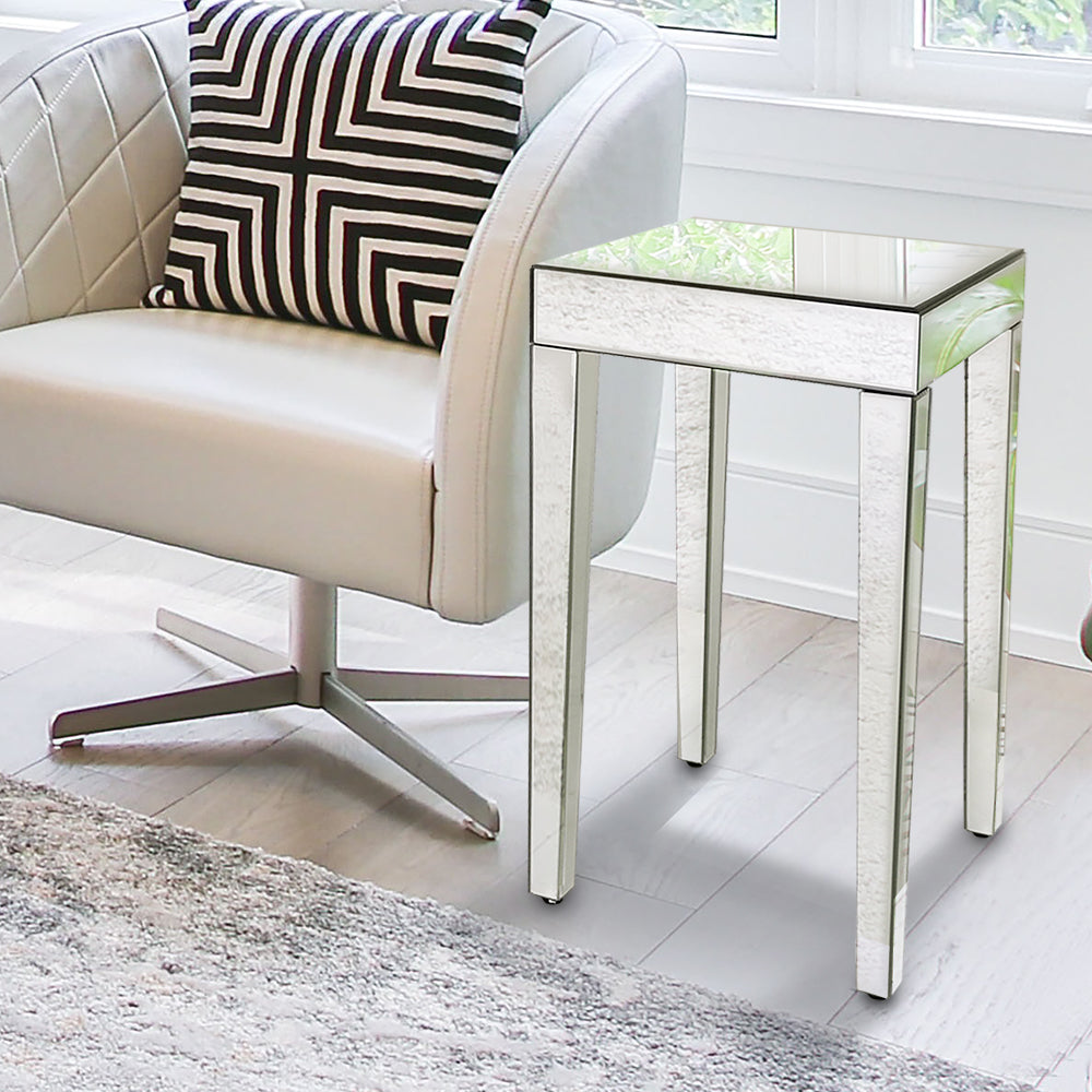 Bring a touch of glam to any room with this mirrored table which can be used as an accent table next to a sofa or as a standalone table in a room. The table has a simple clean-line design that will bring a luxurious look to any room.