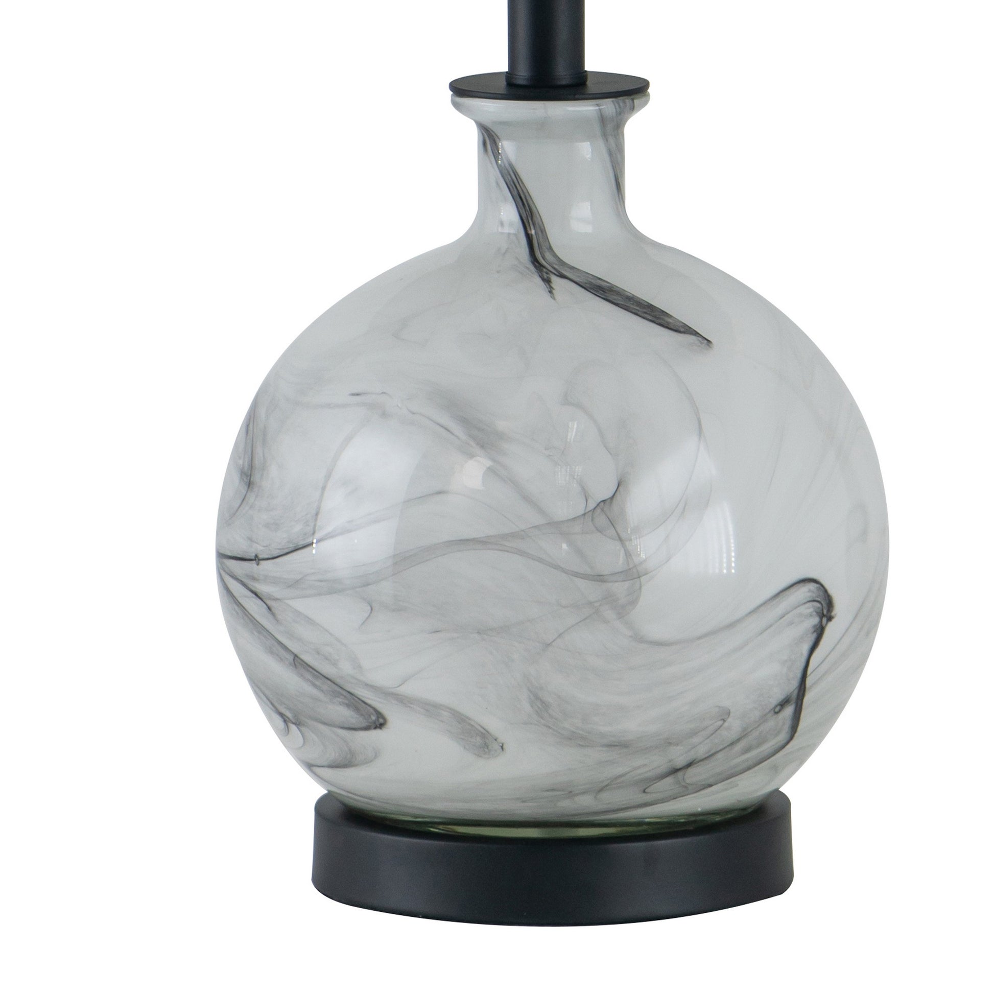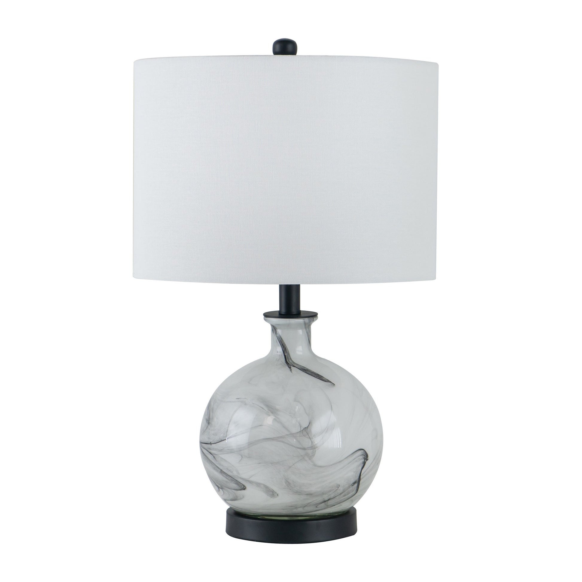 Brighten up the aesthetic of your interior decor with our modern table lamp. It features a clean white linen wrapped drum shade and a bellied glass frame, and the black coated iron frame adds a distinct yet tasteful appearance to the piece. Use it by your bedside, study, living room, or den to spruce up the aesthetic of your interior decor stylings. Check out our Bob collection for more options.
