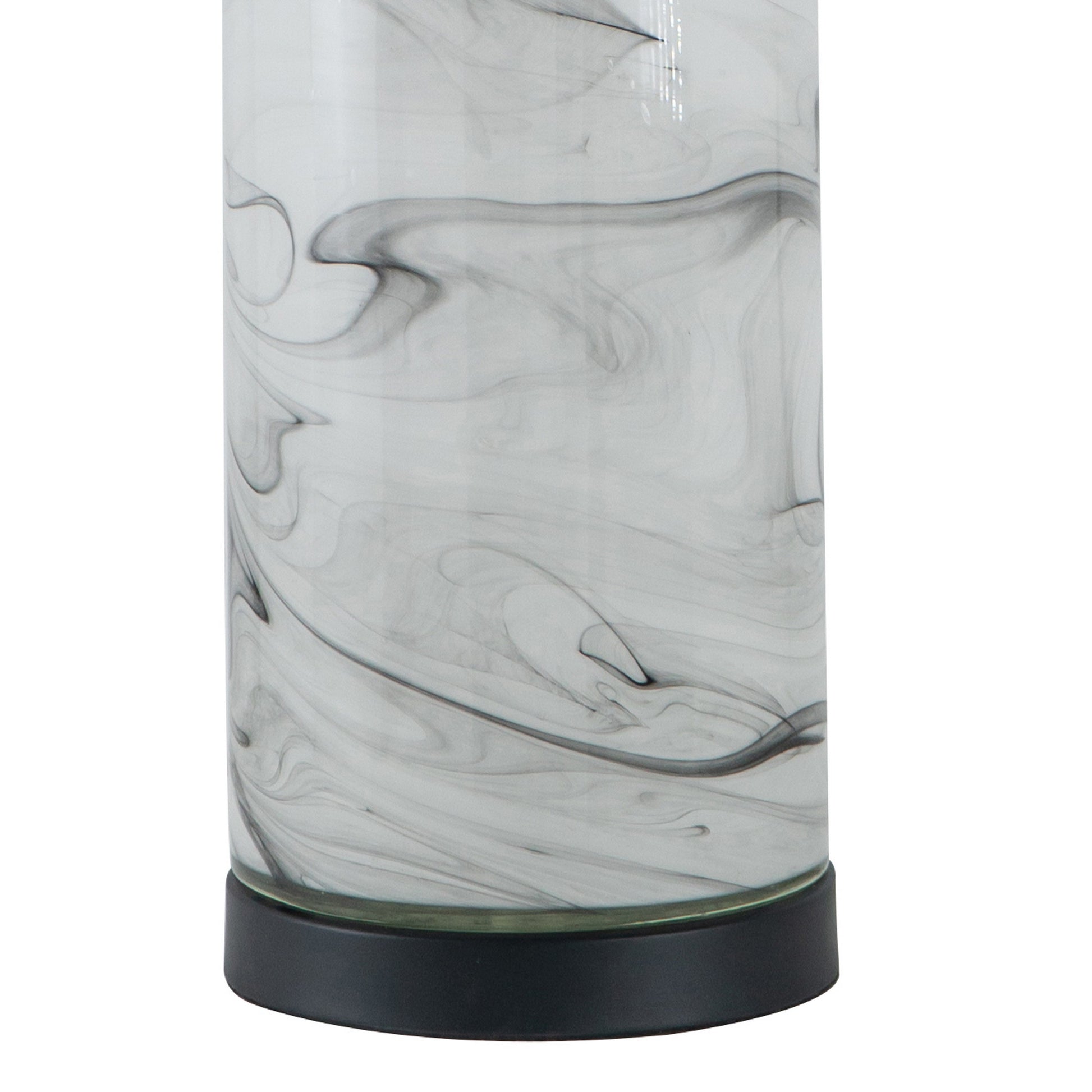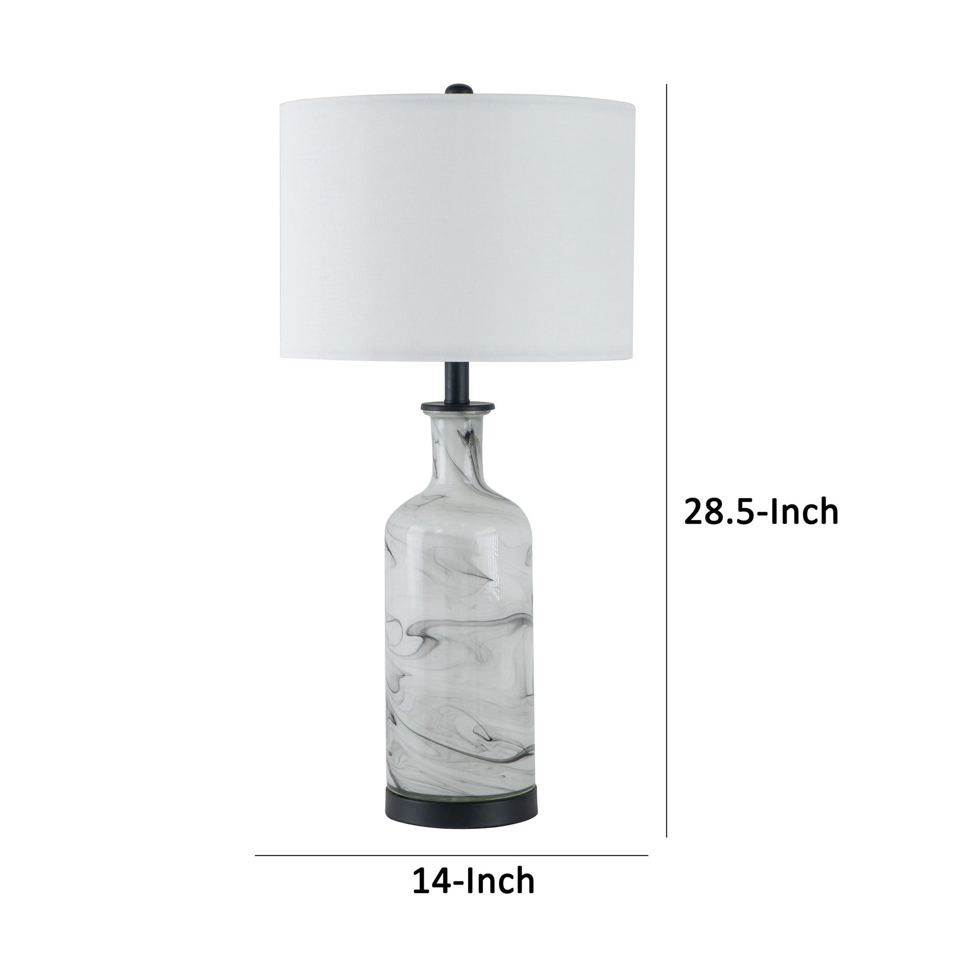 Bob 29 Inch Tall Table Lamp with Round Drum Shade Glass Frame White Gray