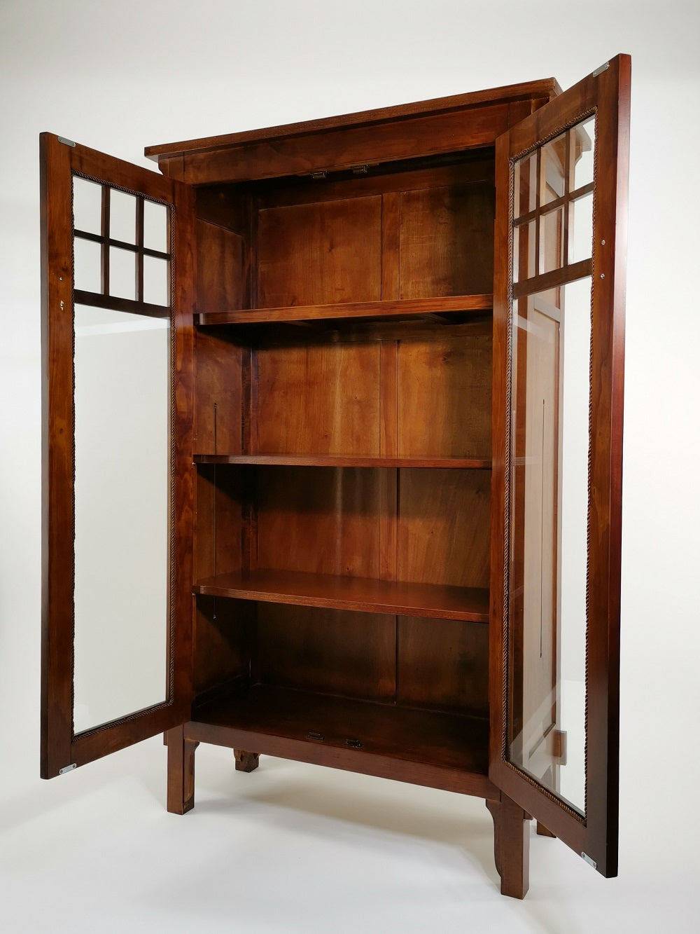 Display your delicate dishes, crystal stemware or collectable keepsakes in this traditional mission style curio cabinet. Made of sturdy birch wood this classic cabinet will be a great addition to your home. Behind the two glass doors are three very spacious removable shelves that can be very useful in a small kitchen or home that requires more storage space.