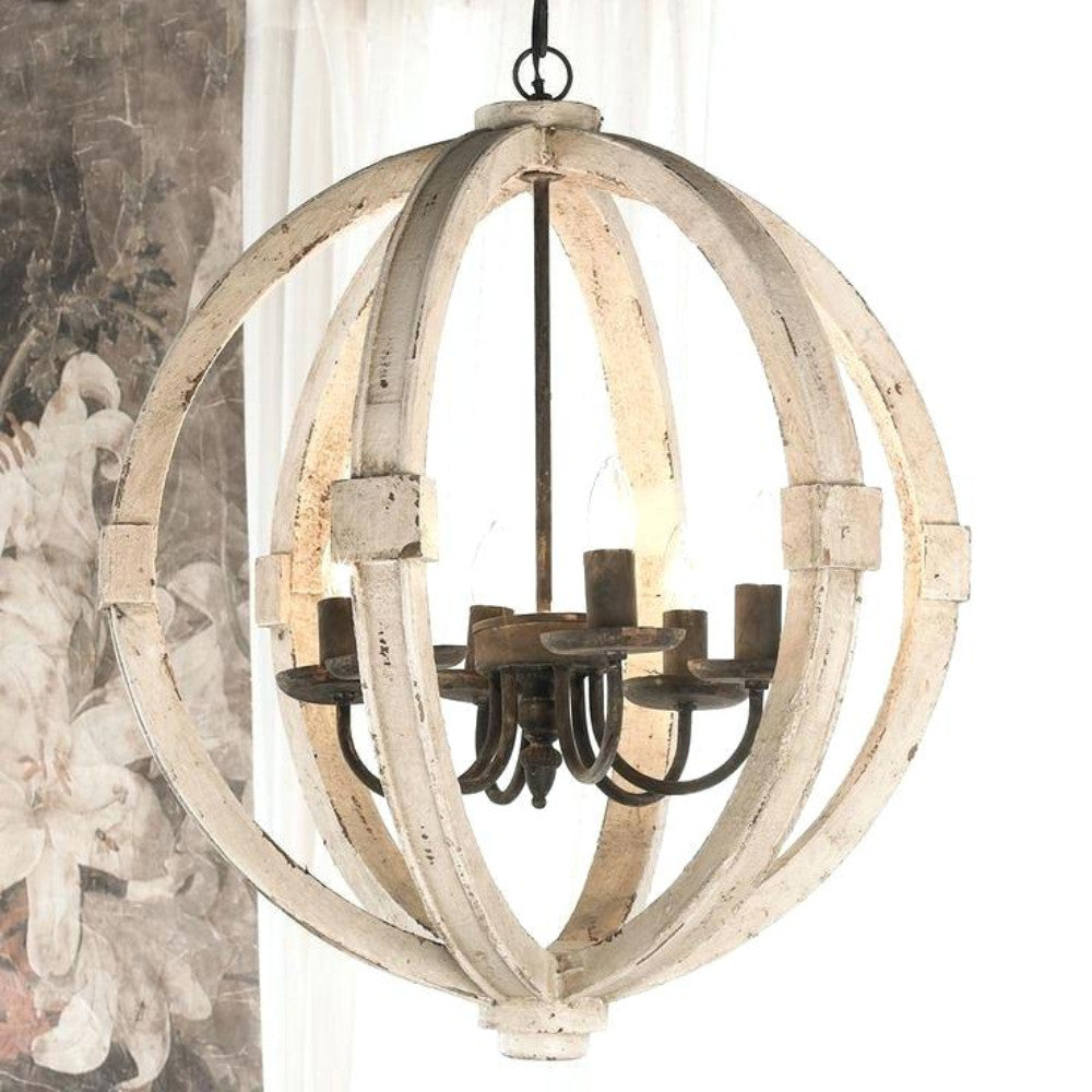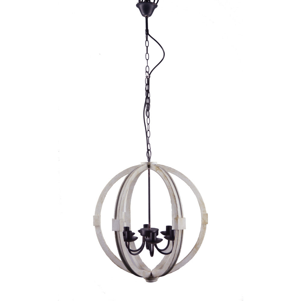 Calder Wooden Orb Shape Chandelier With Metal Chain And Six Bulb Holders White