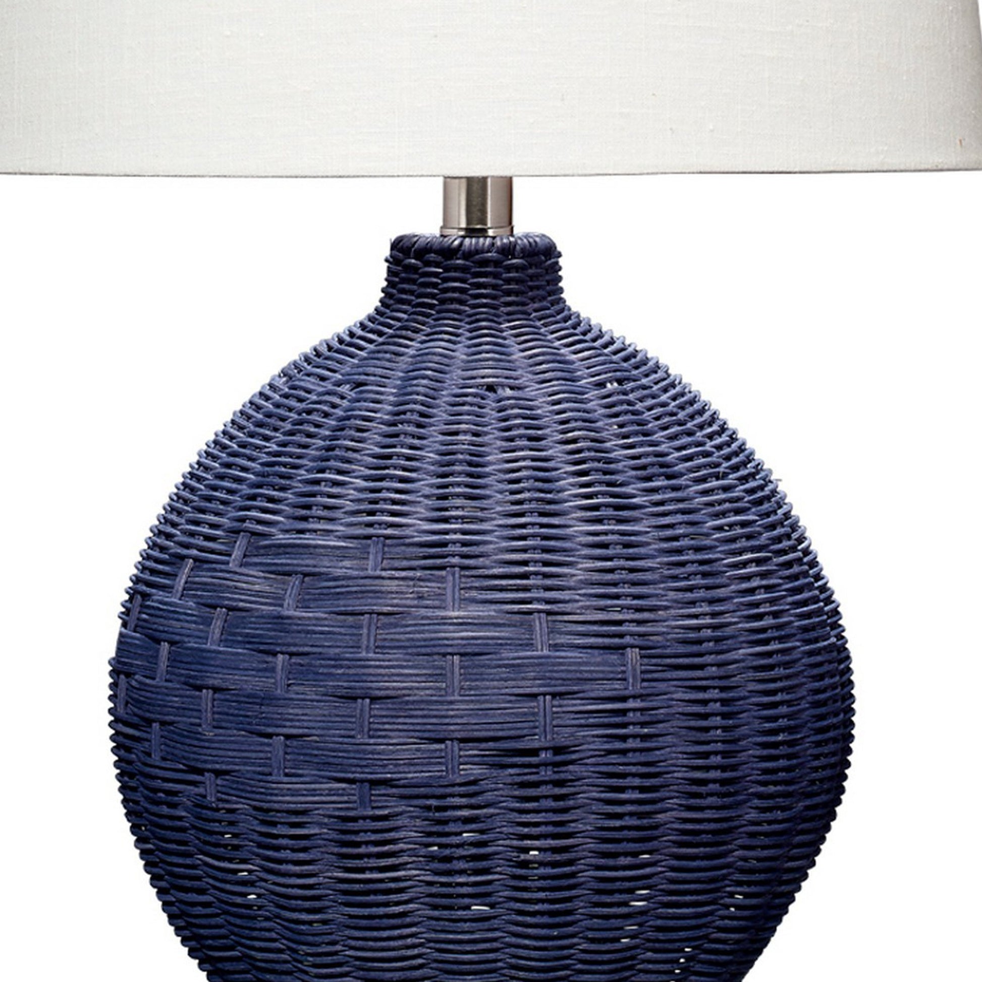Cape 22 Inch Contemporary Table Lamp Hand Woven Rattan Linen Shade Blue