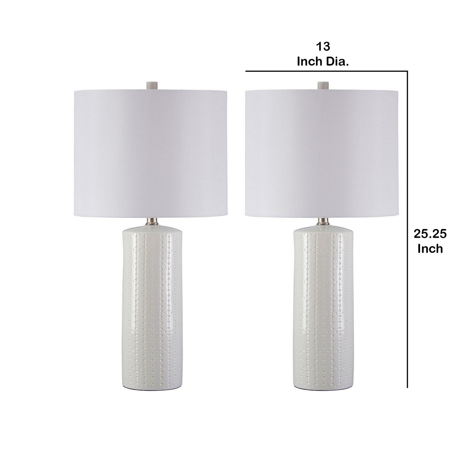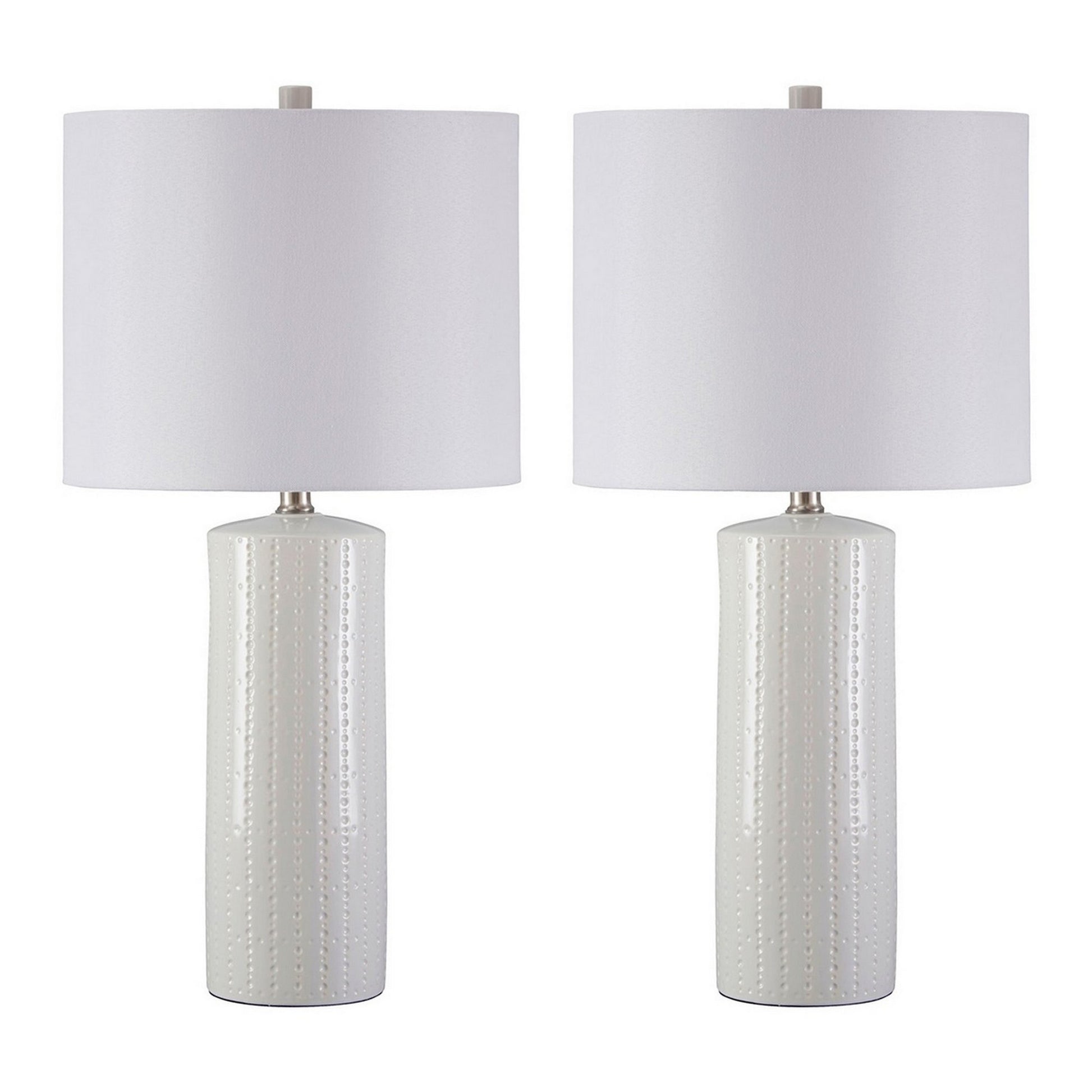 Carved Ceramic Base Table Lamp with Drum Shade Set of 2 White