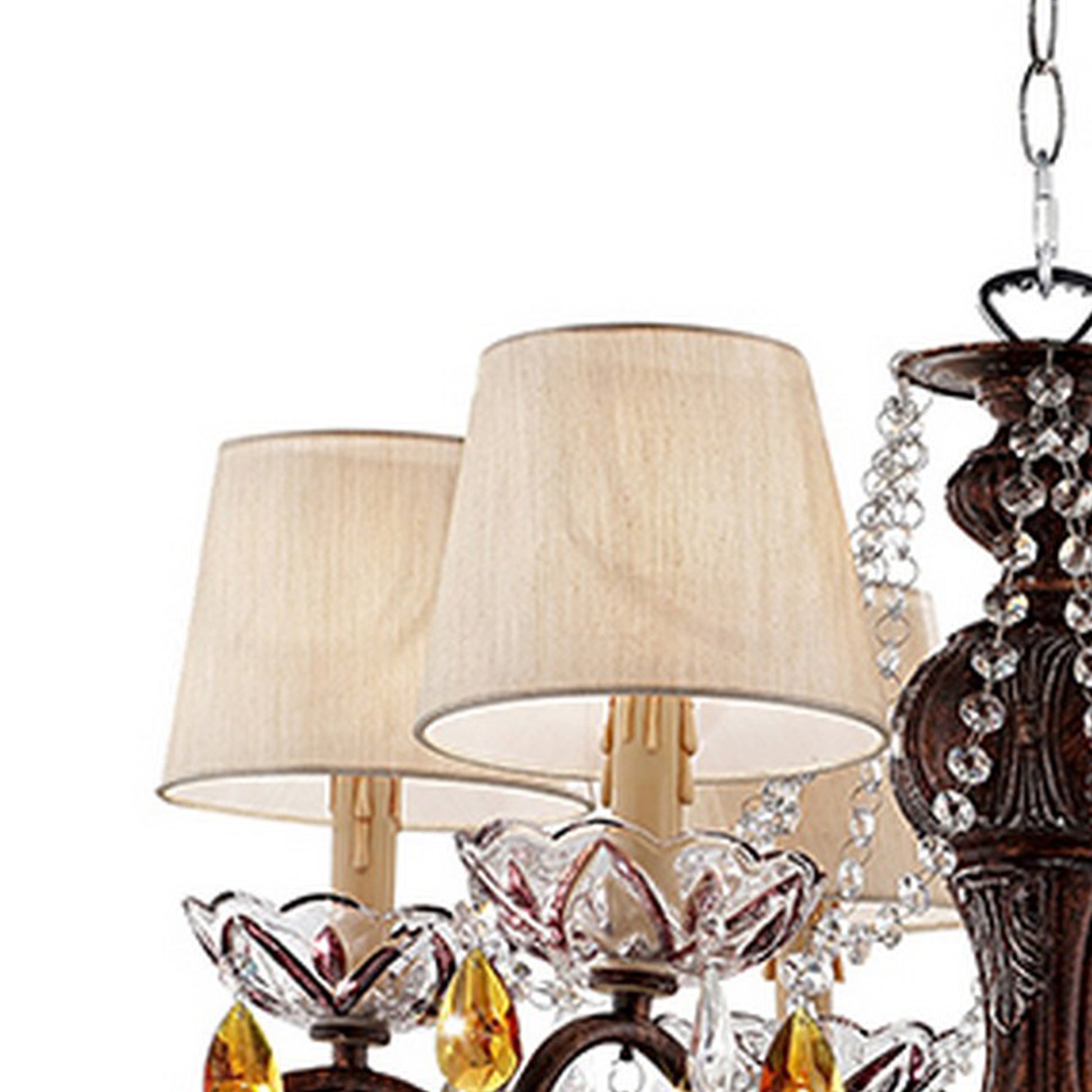 Elegance meets transitional style with this Ceiling Lamp that is adorned with crystals, not to mention the scroll detailed metal frame. Incorporated with 6 linen wrapped drum shade, it will be a captivating addition to the aesthetics of your interior.