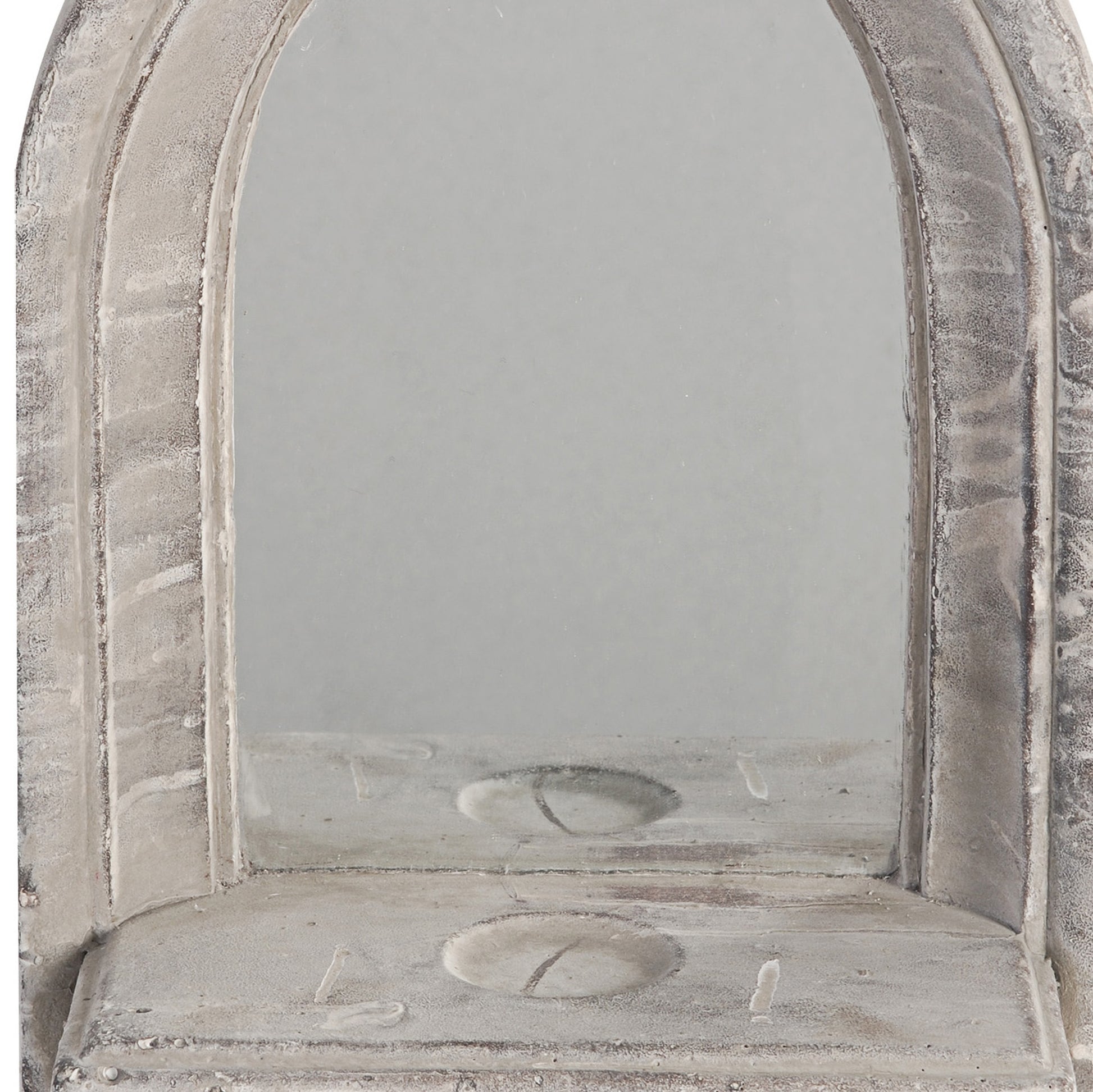 Add depth and personality to any wall of your outdoor space and entrance area with the classic wall mirror. Sturdily constructed using cement, this mirror features an old-style design. Featuring a washed white finish, this mirror has thick cement border, offers a traditional charm. Use this mirror alone or mount with other style mirror to create a unique and varied display arrangements to any theme home decoration.