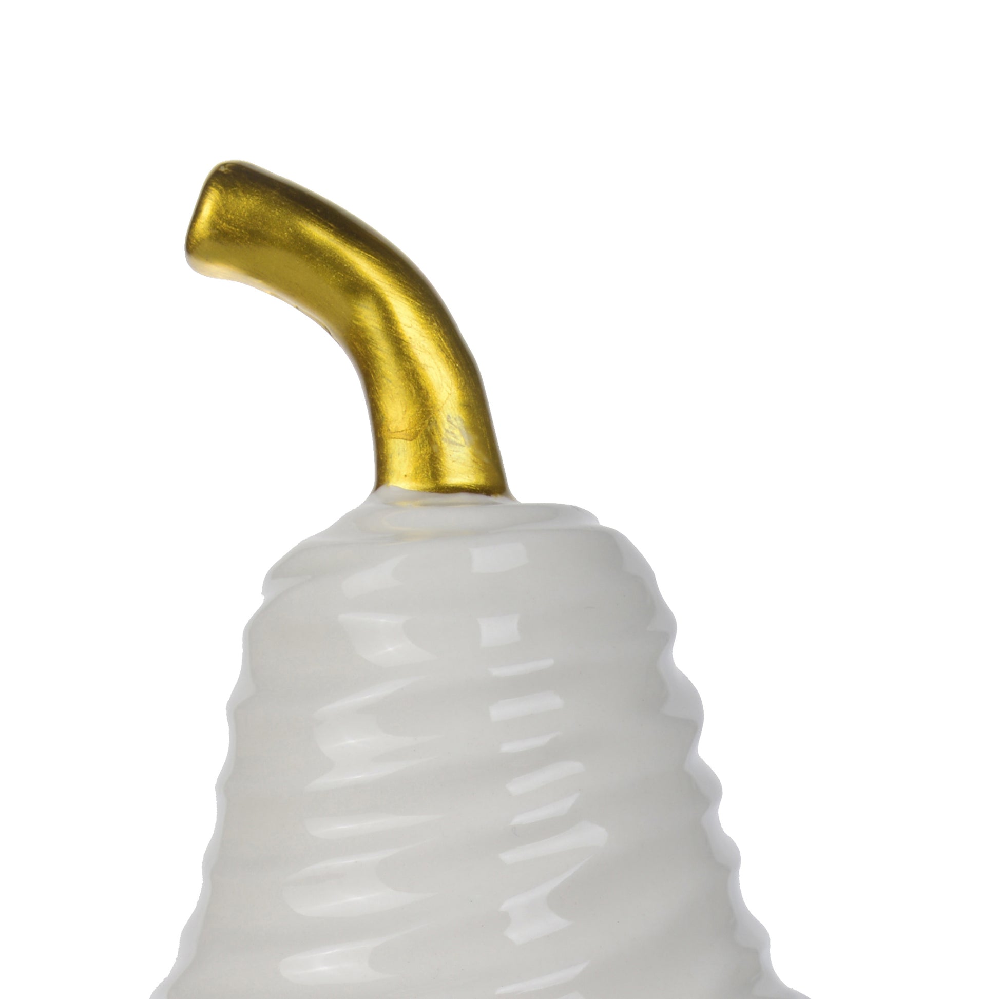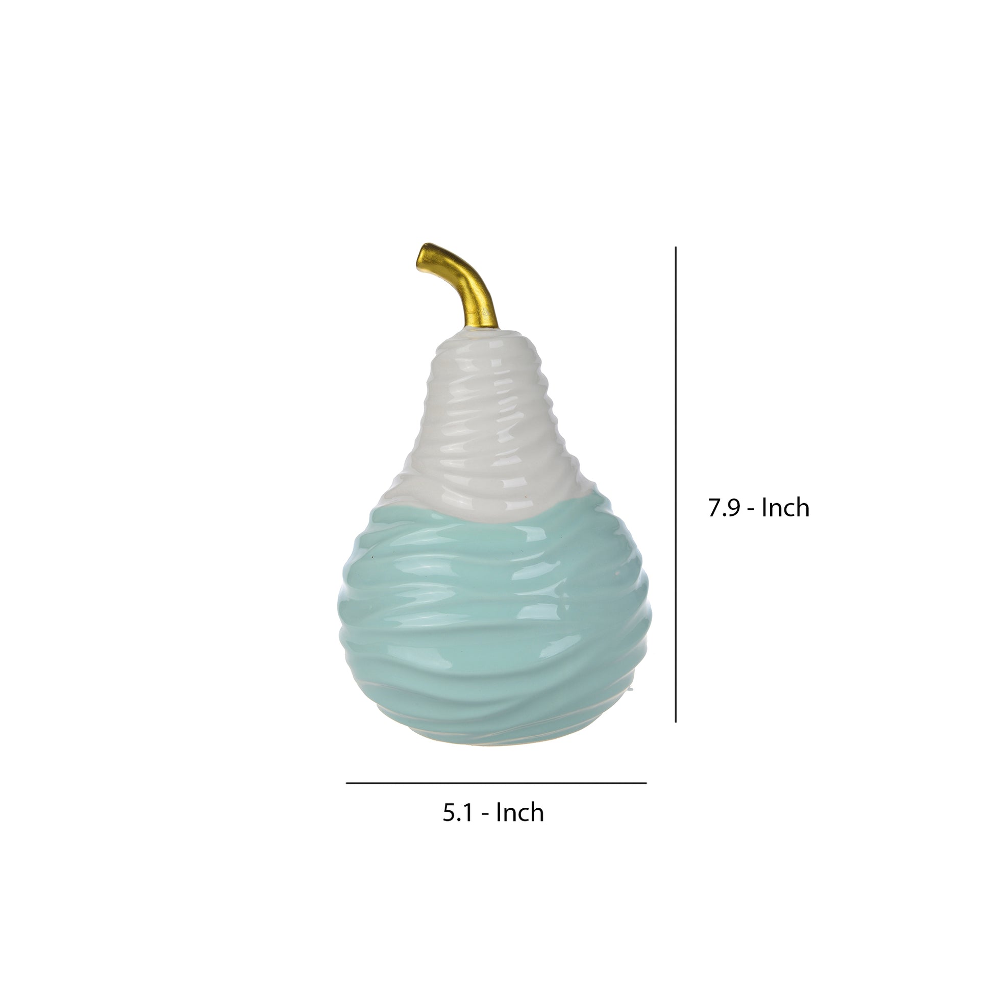 Ceramic Decorative Pear With Golden Stem White And Blue