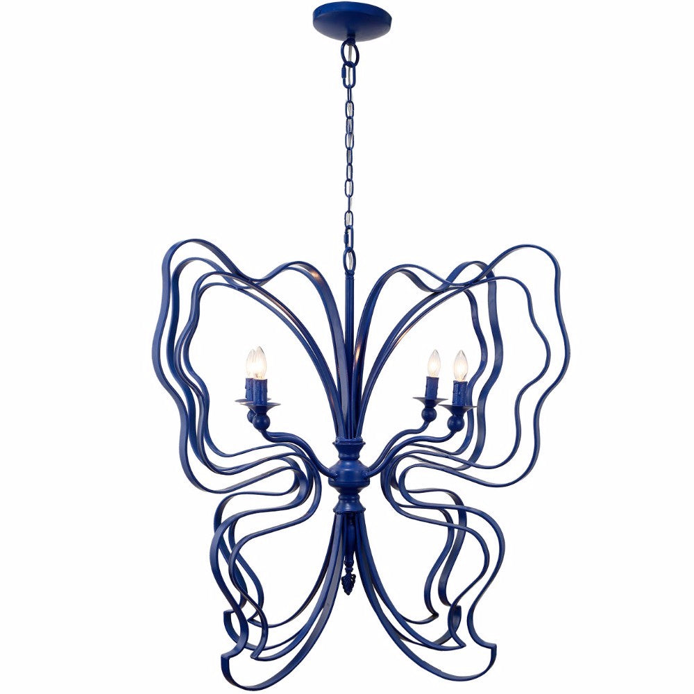 This beautiful Chandelier in blue hue is sure to grab all the attention with its chic look and ultra-modern designing. It showcases an elegant butterfly structured framework with curvy details and four candle bulbs.