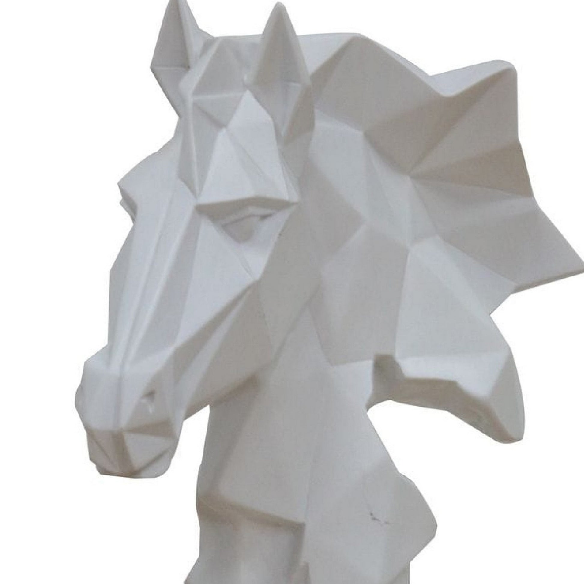 This striking matte white horse bust sculpture, reminiscient of grand statues of historical dignity and importance, is crafted in a geometrical modern fashion to catch eyes and add style and energy to any interior decor. It is crafted from polyresin and is both easy to transport and easy to clean. Check out our Cid Collection for matching items.