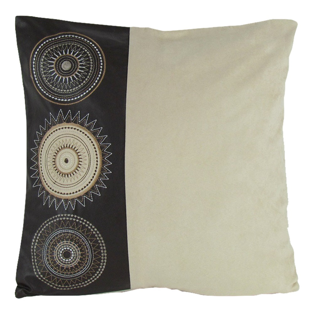 Circle Stiching Faux Leather Decorative Pillow 17"X17"