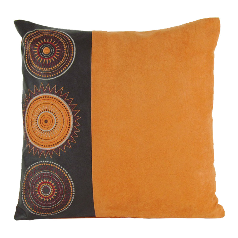 Circle Stiching Faux Leather Decorative Pillow 17"X17"