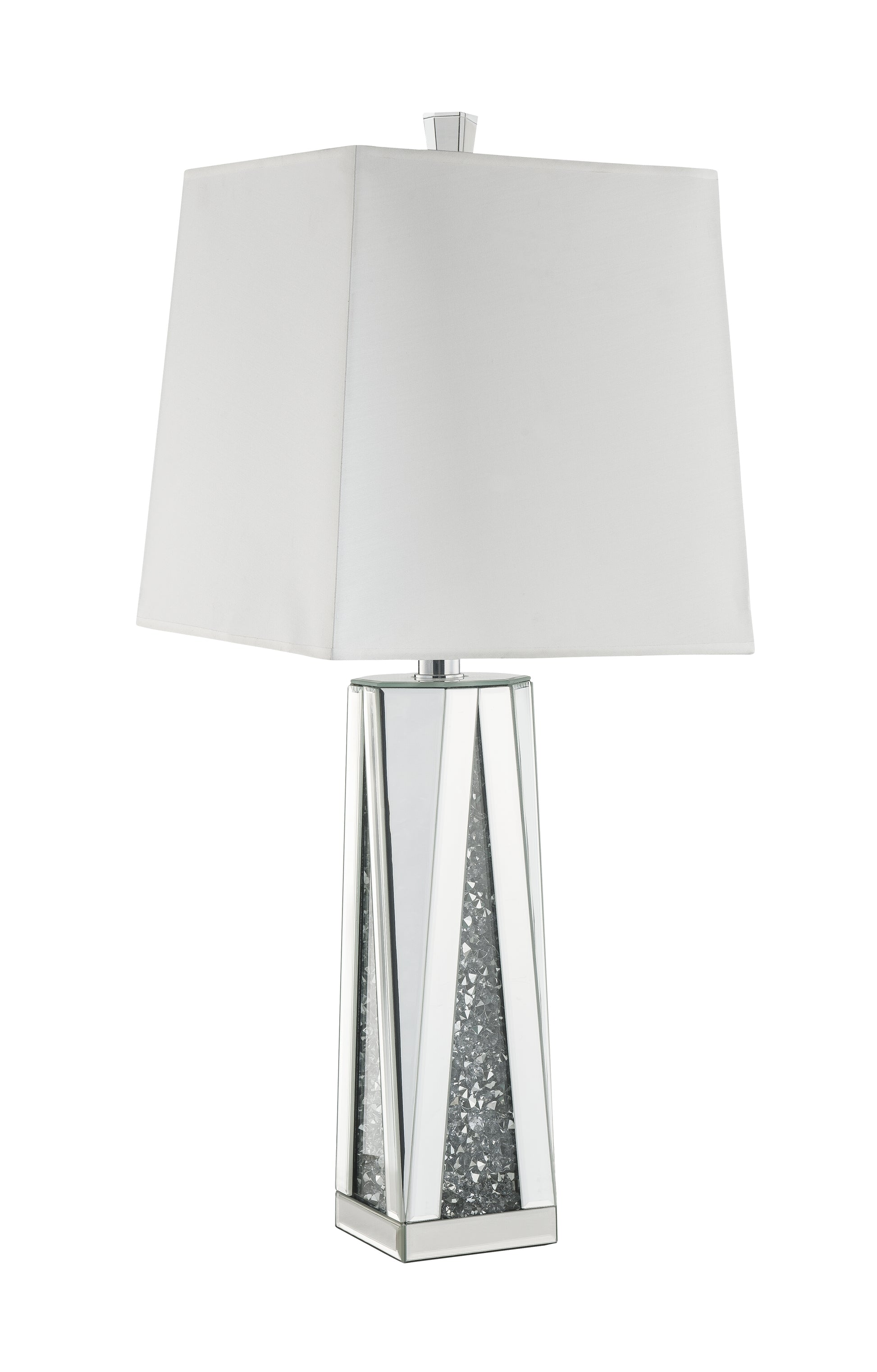 Contemporary Square Table Lamp with Faux Diamond Inlays White and Clear