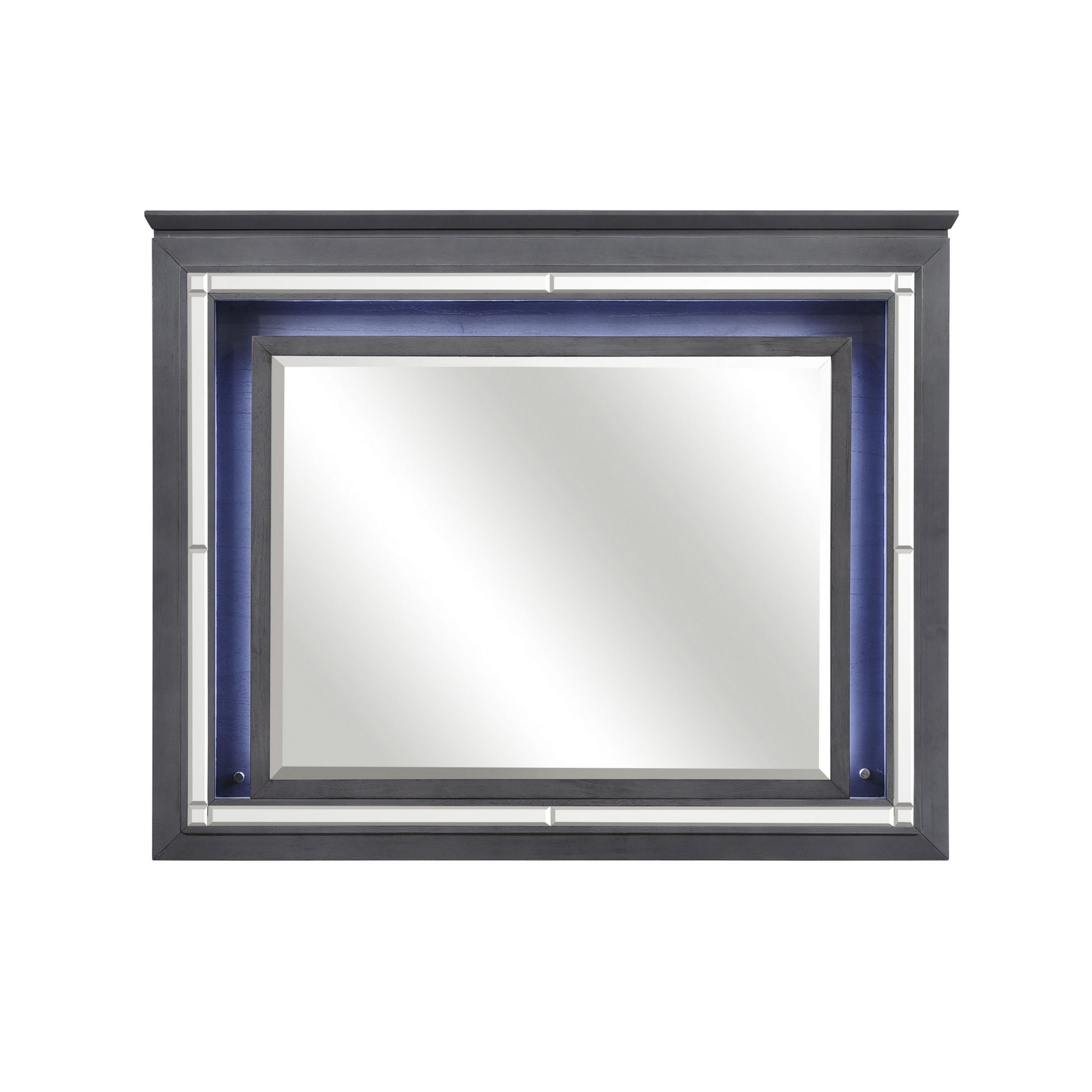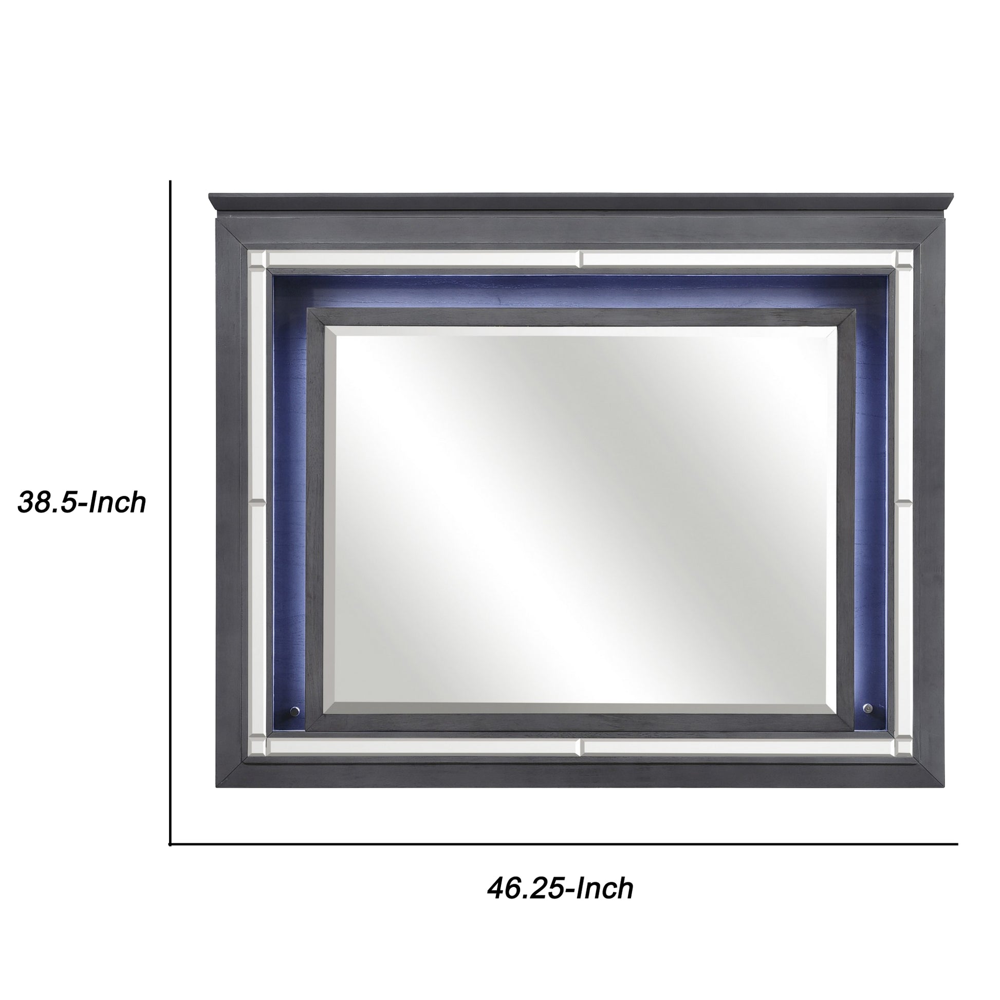 Give your wall the finishing touch with this beveled edge wall mounted Mirror, featuring LED light backing helps give this home accent a distinctive look to enhance your wall. This versatile mirror has a antique gray finish that will surely complement most home decor.