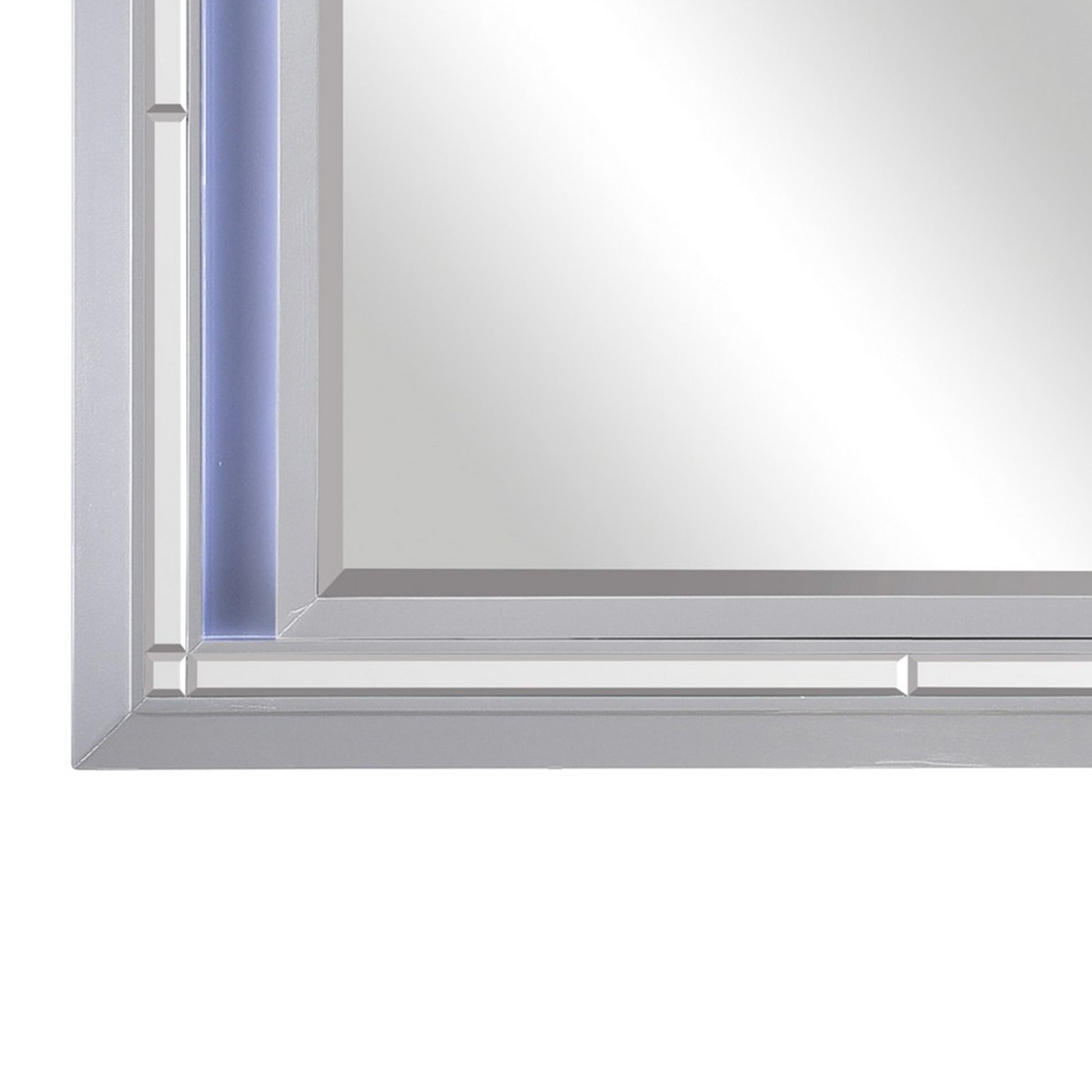 Contemporary Style Beveled Edge Mirror With Led Light Silver