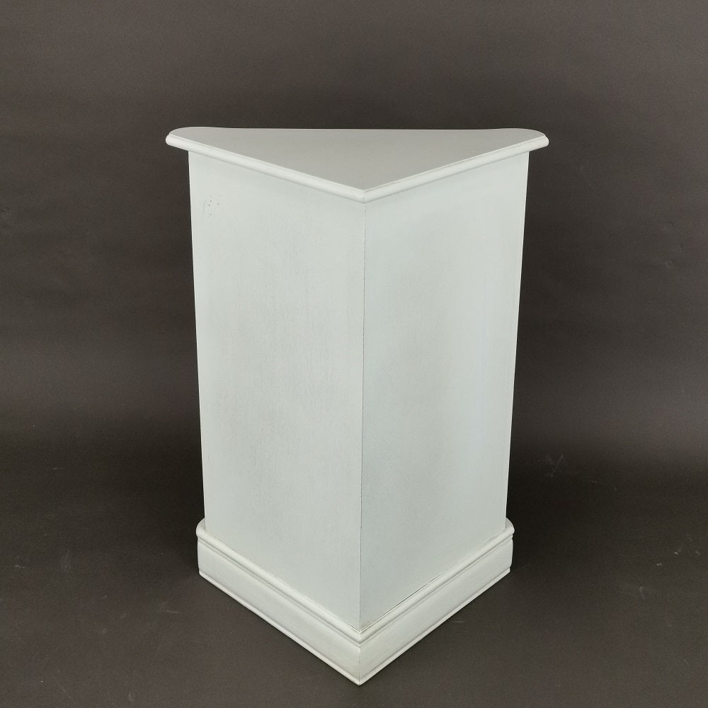 Looking to fill in the open space in that small nook or corn? This corner cabinet is a wonderful piece to add extra storage space in those places. Made with vintage look this functional cabinet has a dropdown door space to drop keys, mail or small items in to keep out of sight while hiding larger items behind the doors. Crafted from solid wood, this corner cabinet can be added with ease to any room décor.