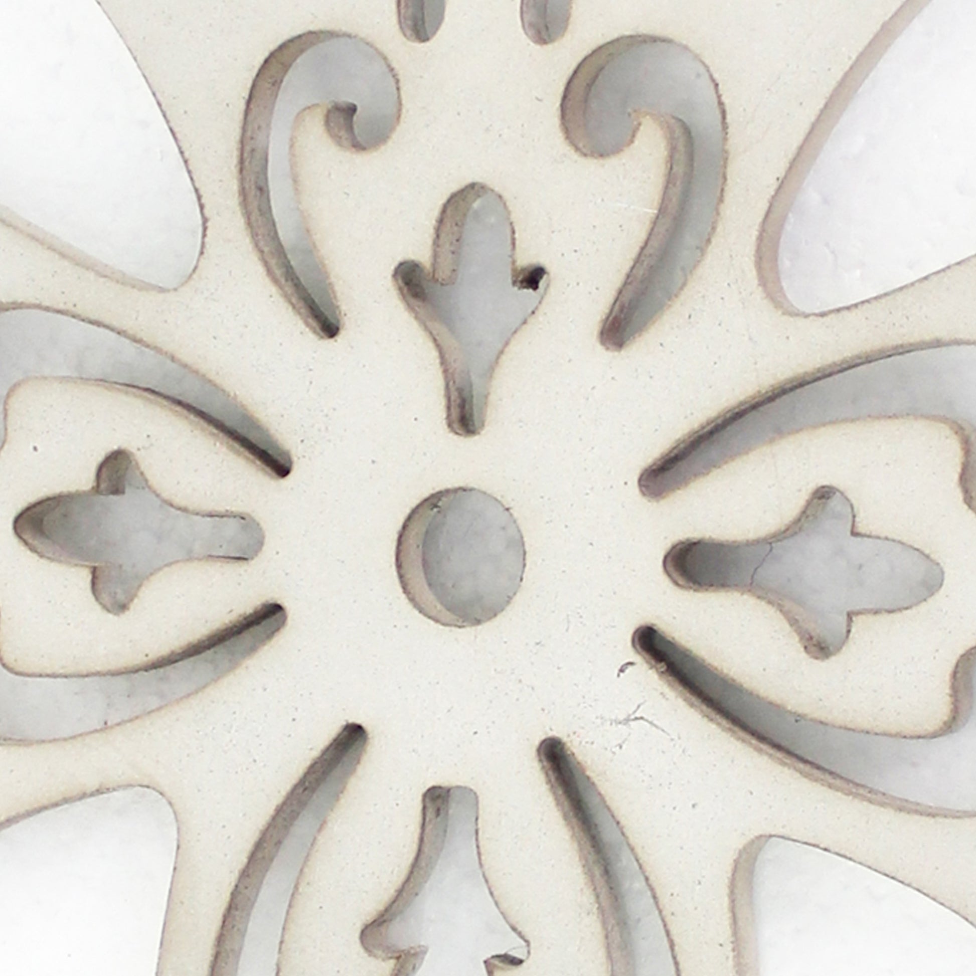 Cross Shaped Wooden Candle Holder With Scrolled Engravings White