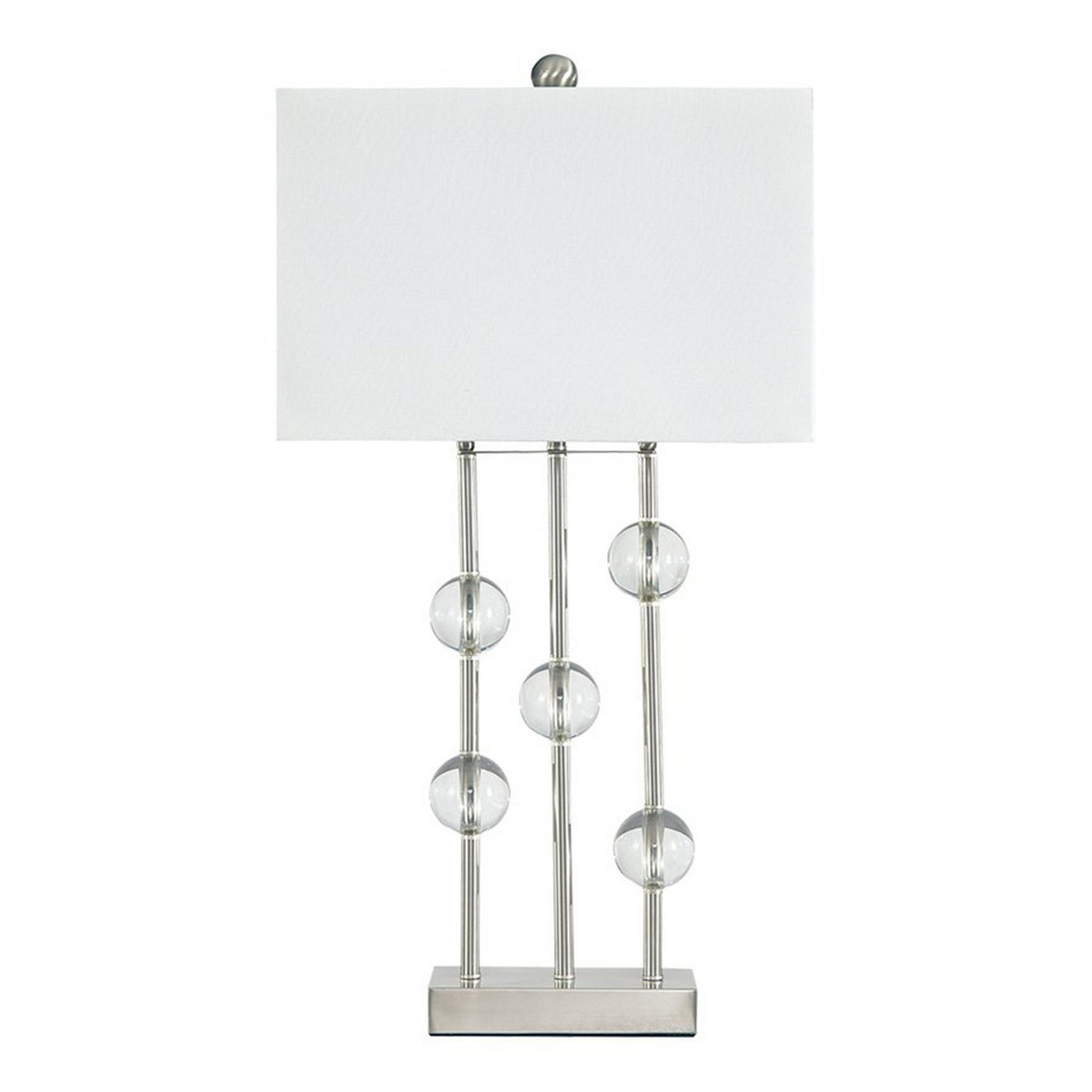 Crystal Accented Metal Table Lamp with Hardback Shade White and Silver