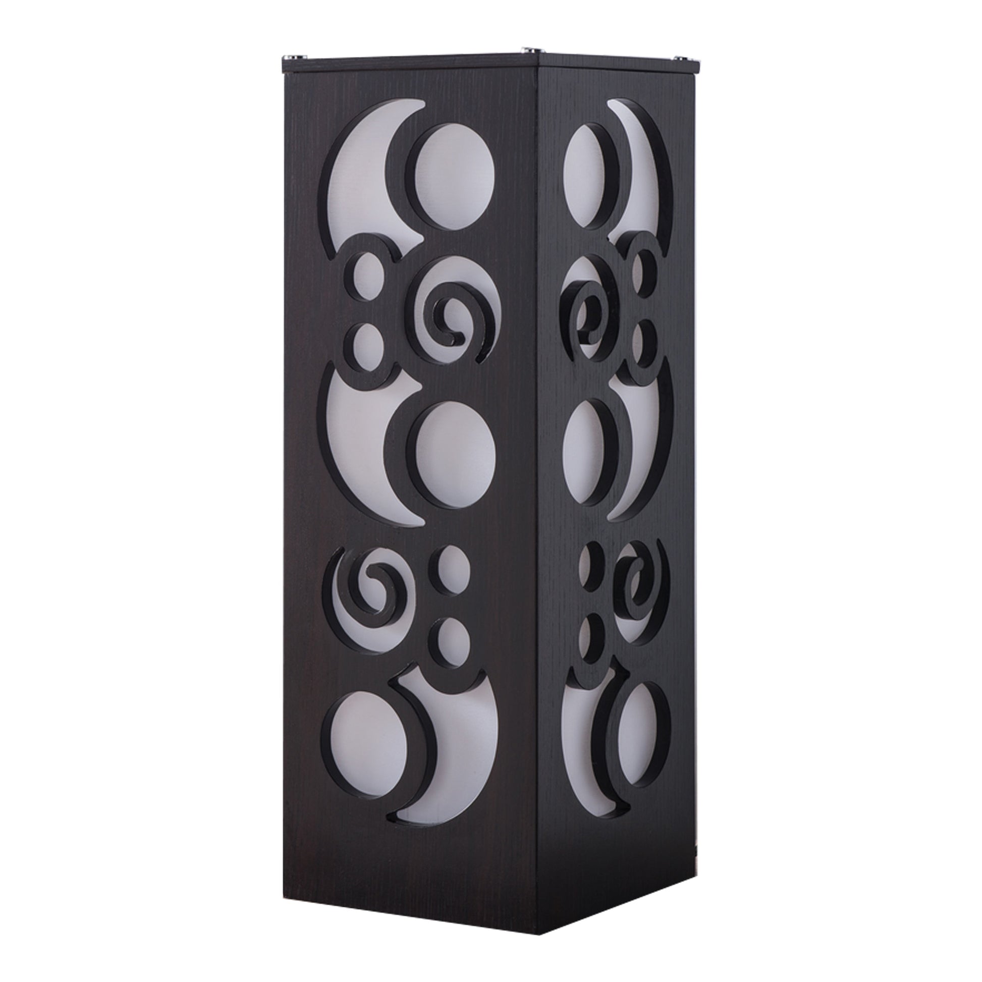 Emblaze your existing decor setting by bringing in this contemporary style Table Lamp which comes in a cuboidal shape and showcases intricate cut out details. Constructed from the combination of MDF, composite wood and pvc paper, it is accented with dark brown finish.