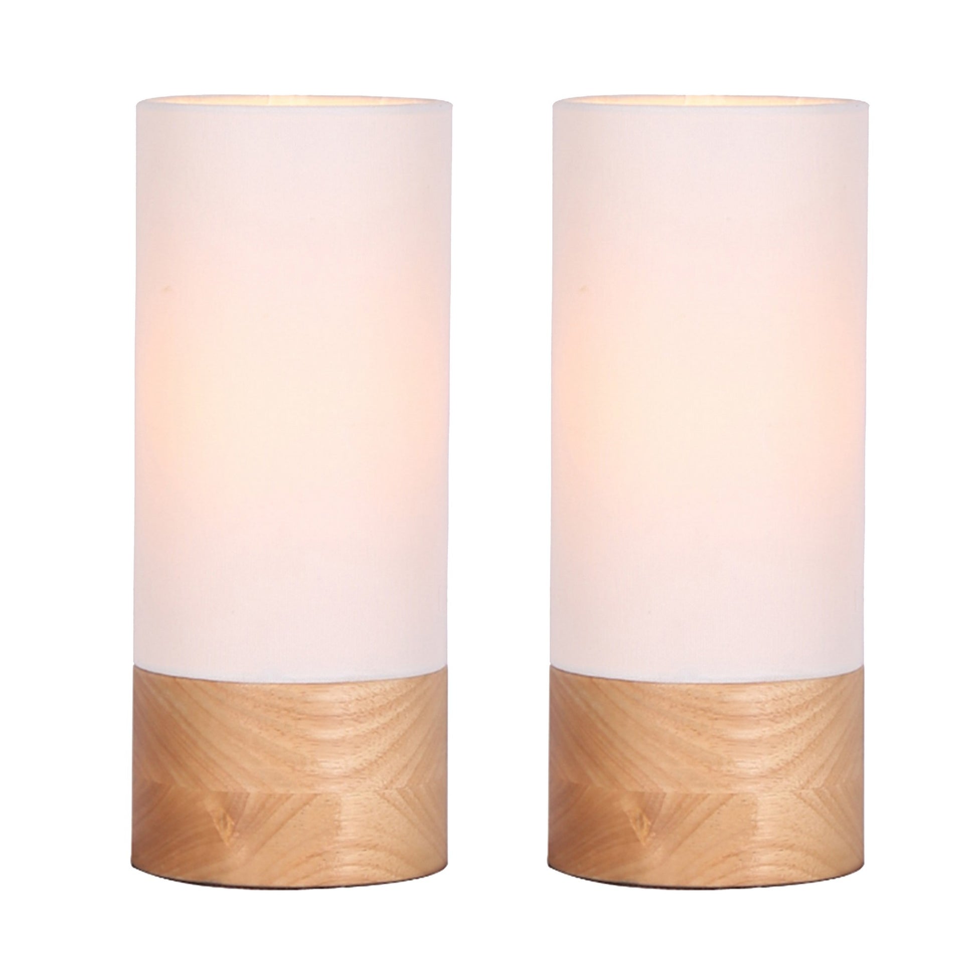 Cylindrical Wooden Cannister Table Lamp Set of 2 White and Brown