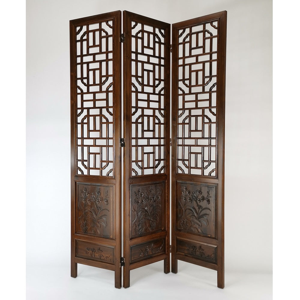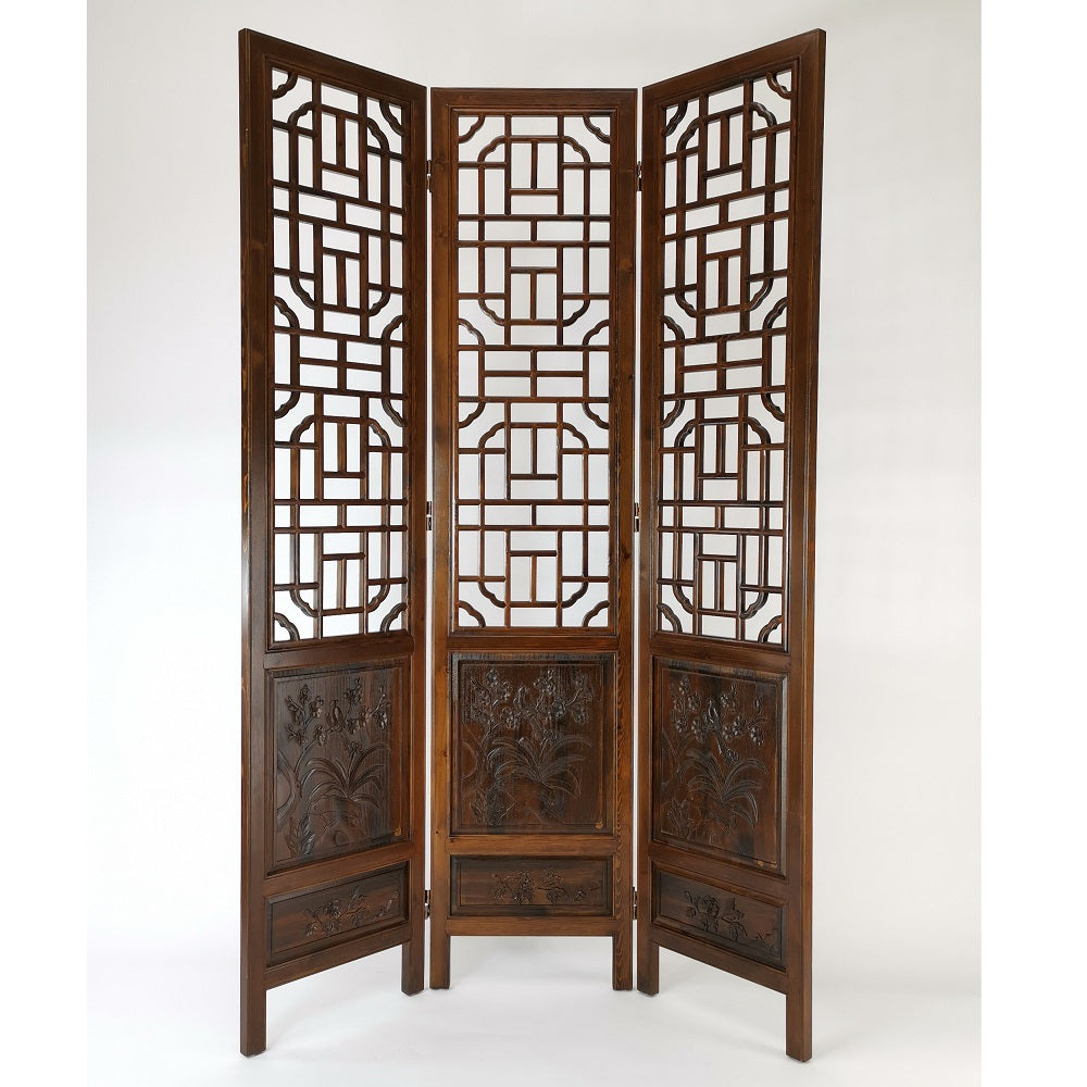 Asian inspired Chinese plum blossom featuring a delicate bird on its branches on each panel. Offering an elegant and traditional look you can still provide privacy while letting the light shine through. This stylish room divider works double duty as a privacy screen or against a wall to use as an accent piece. Used in a large open space, this screen will help divide a room while displaying an openwork art piece so you can see between both sides of the room. While against a wall it can be use behind a bed as an artful headboard or on the wall as an open art décor. Whichever room you decide to put this room divider it will help tie up your whole ambiance and bring a wonderful flow to your home.