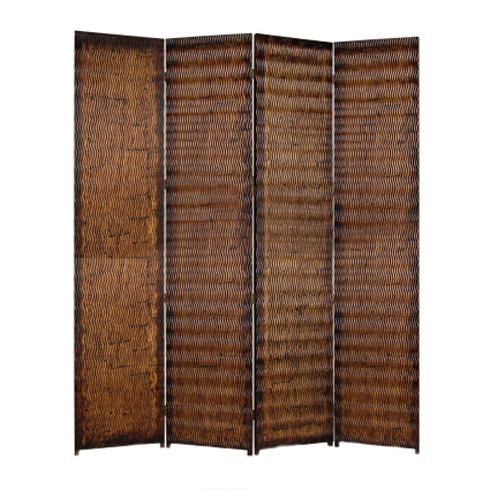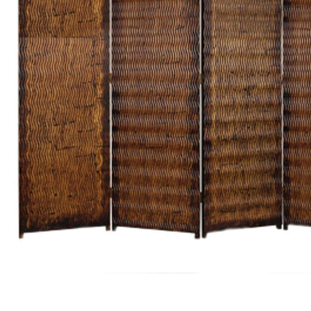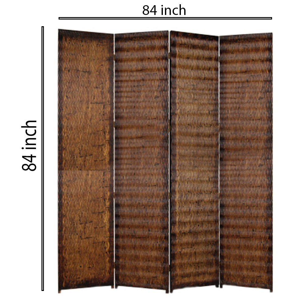 Dual Tone 4 Panel Wooden Foldable Room Divider with Wavy Design, Brown