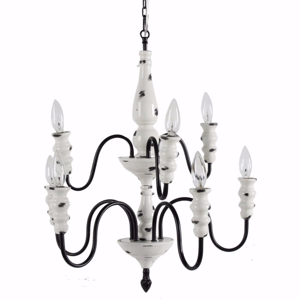 Likely to renovate your living space with a sublime accent, this 8-Arm Chandelier is a perfect eye-catching piece. Showcasing a subtle luster in slick white color and black accents, it consists of 8 arms with an appealing look.