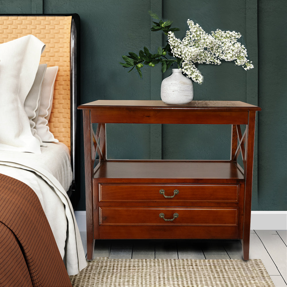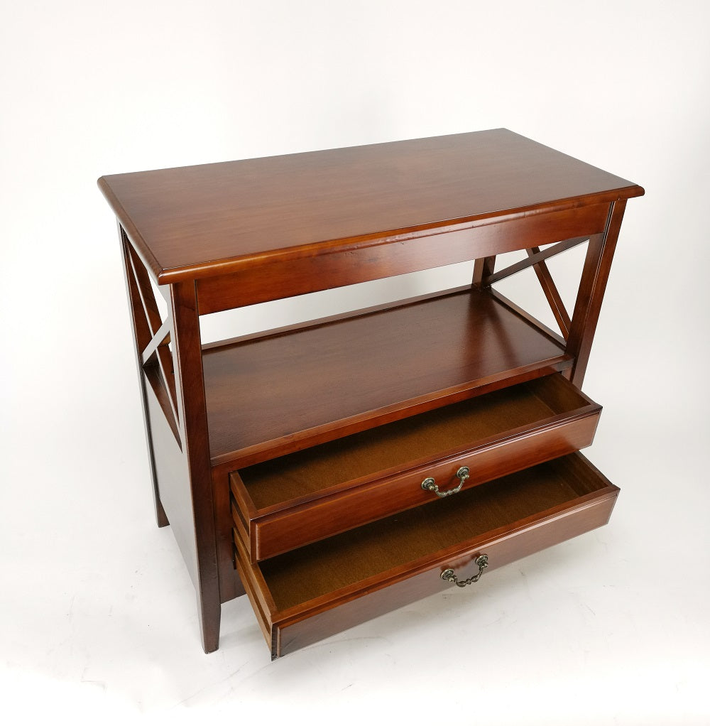 Catch up on the latest show, game or settle in for a movie marathon while making the most of a small space with this two drawer TV stand. A large open upper space with an X-shaped accent you can store all your media equipment including game consoles or cable boxes.