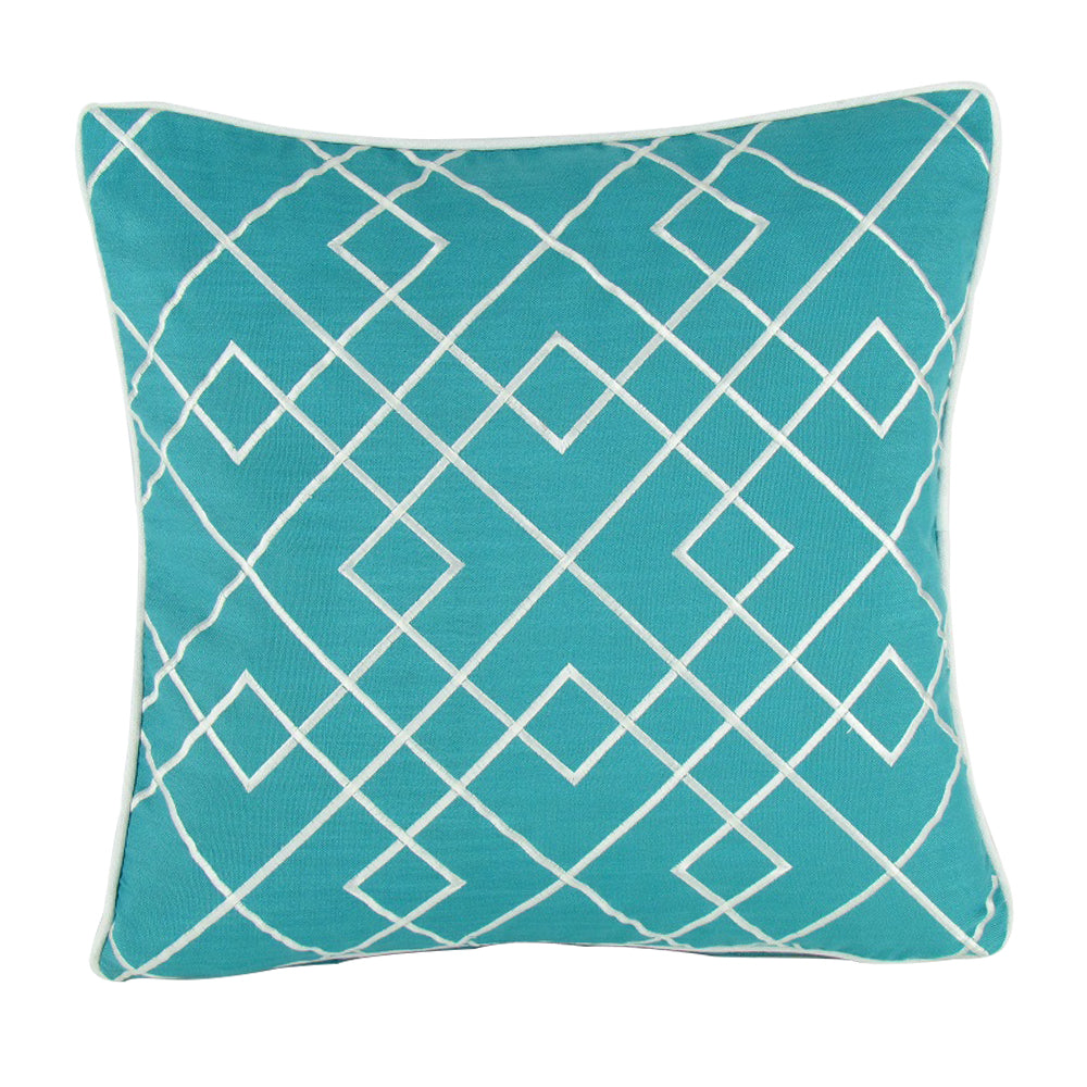 Embroidered Blue Decorative Pillow 17"X17"