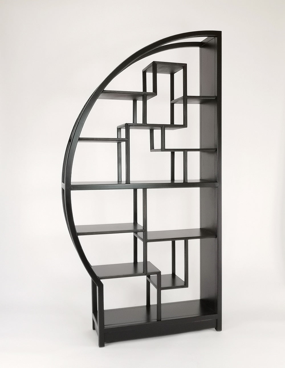 - Asian Inspired display unit is perfect for dinning room, living rooms or den. This half circle can be viewed both from front and back so putting two together will really bring something extra to any décor. Can be used to display pictures, unique valueables or collectables items.