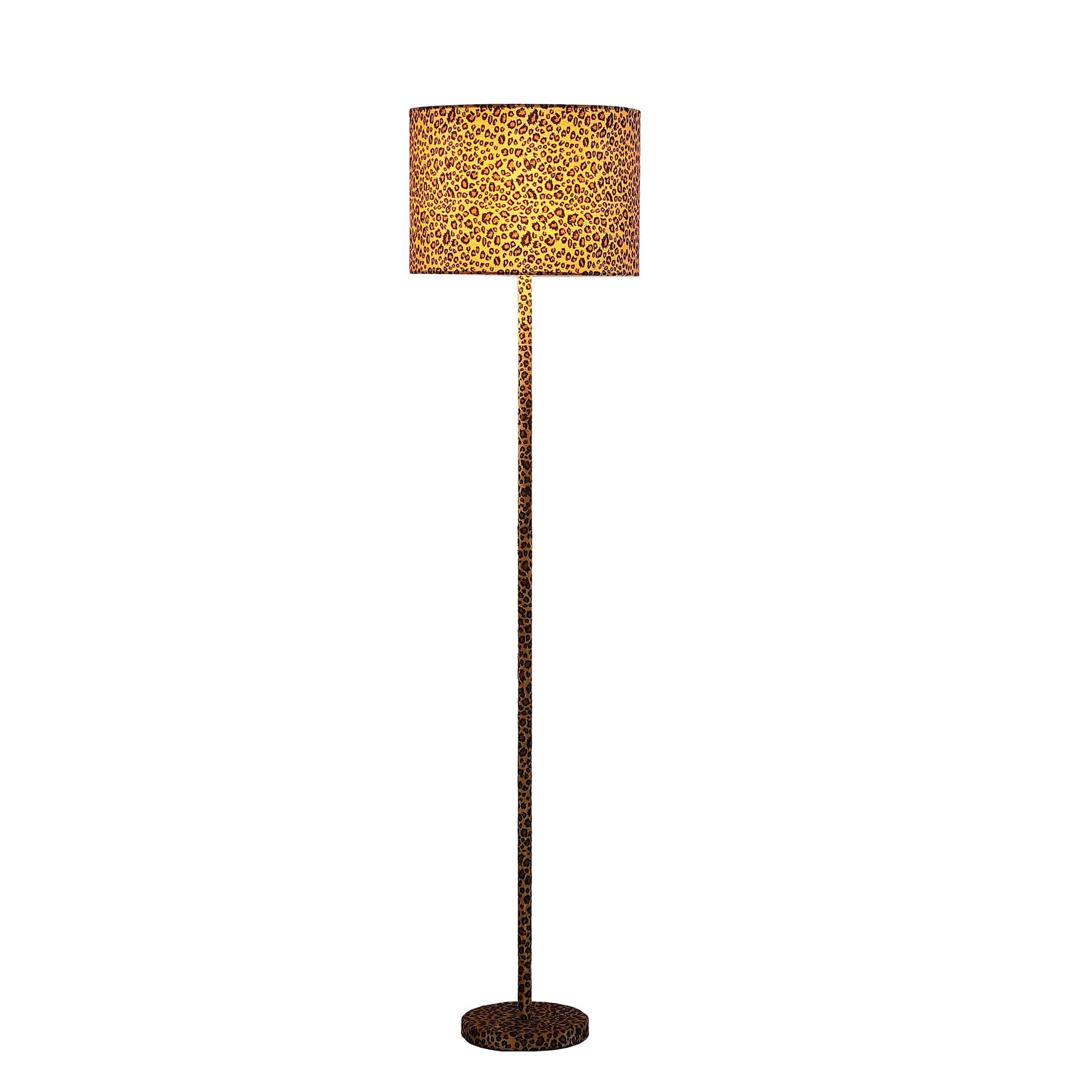 Fabric Wrapped Floor Lamp With Dotted Animal Print Brown And Black
