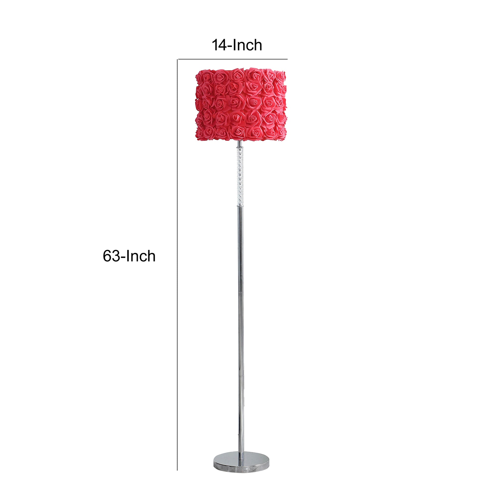 Finn 63 Inch Glamorous Floor Lamp Rose Accent Shade 100w Pink Silver