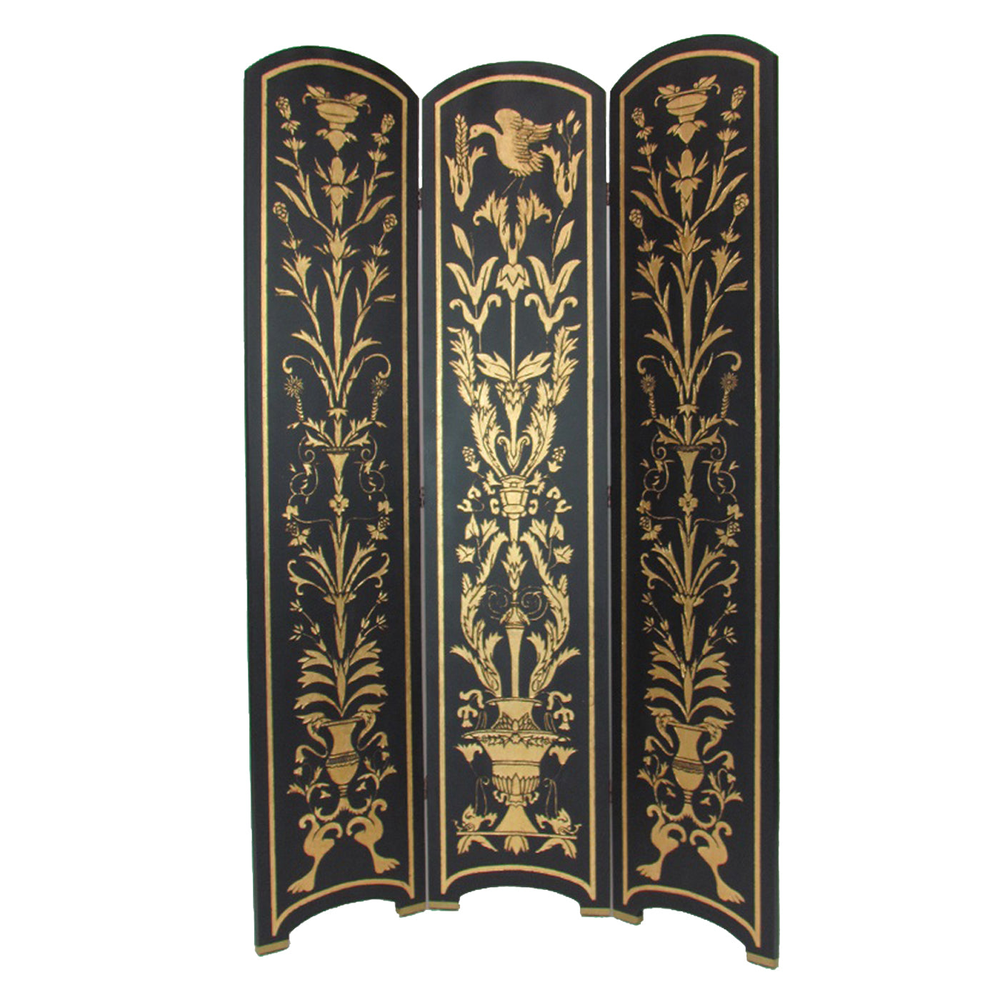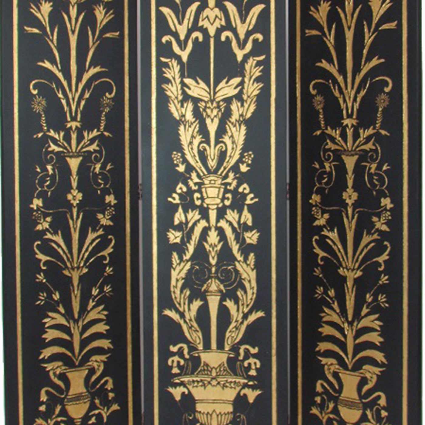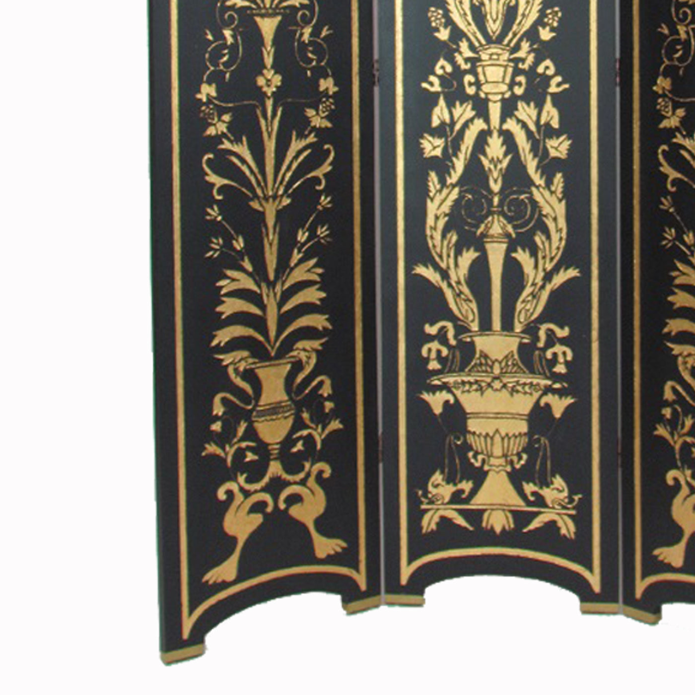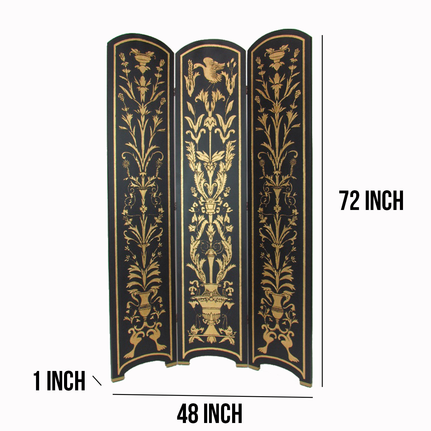 Foldable 3 Panel Room Divider with Traditional Print,Black and Gold