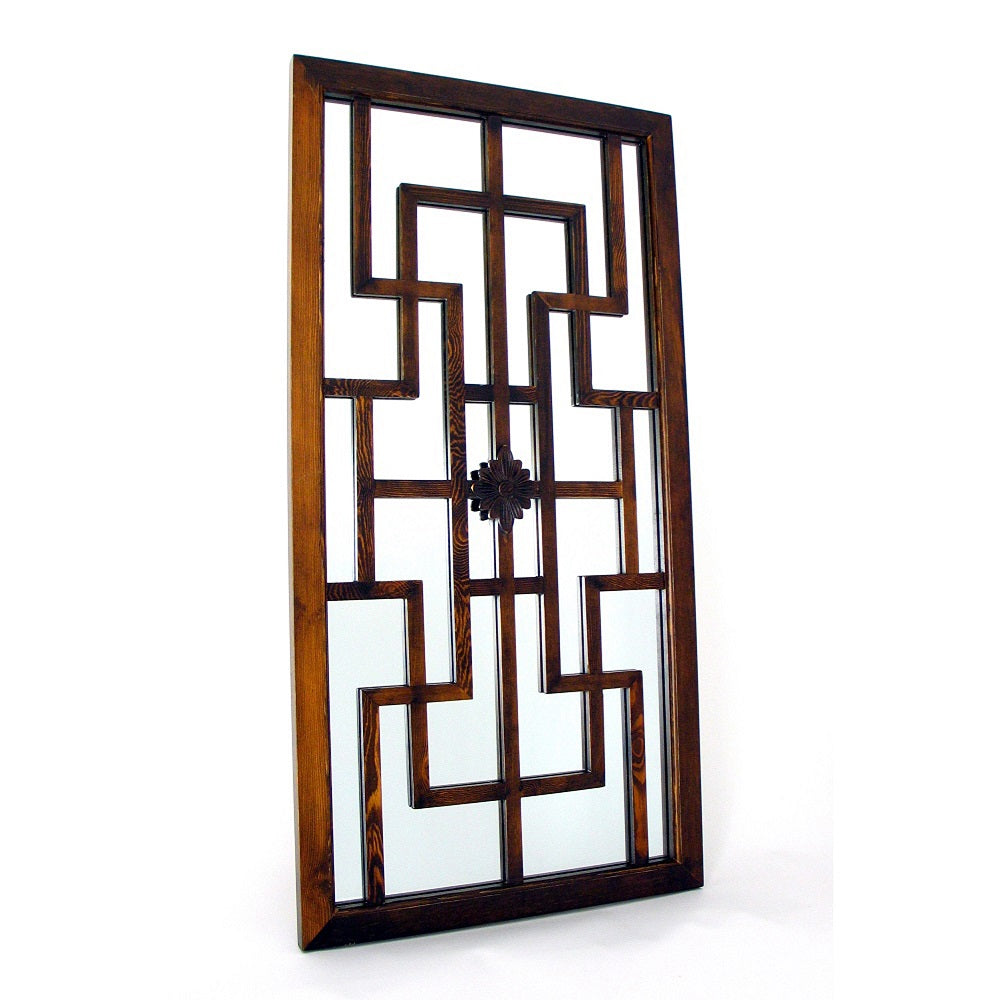 Giving your wall this Asian inspired geometric wall mirror will be a wonderful way to add style to you home decor. The delicate flower is hand carved in the middle of this mirror that will be a great conversational piece while on any wall in your home. Ready to be hung right out of the box, this lovely rectangular mirror will fit in any living room, hallway, and entry way or home office.