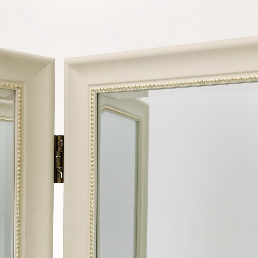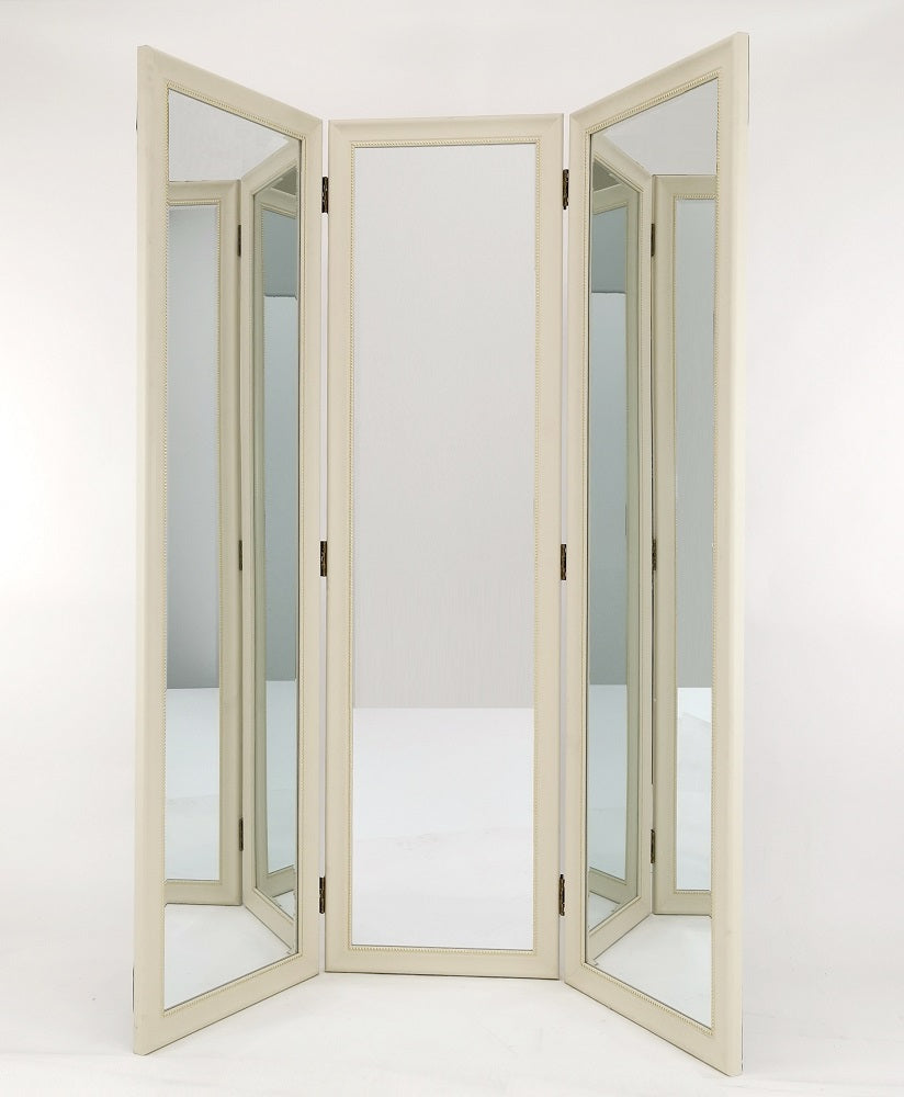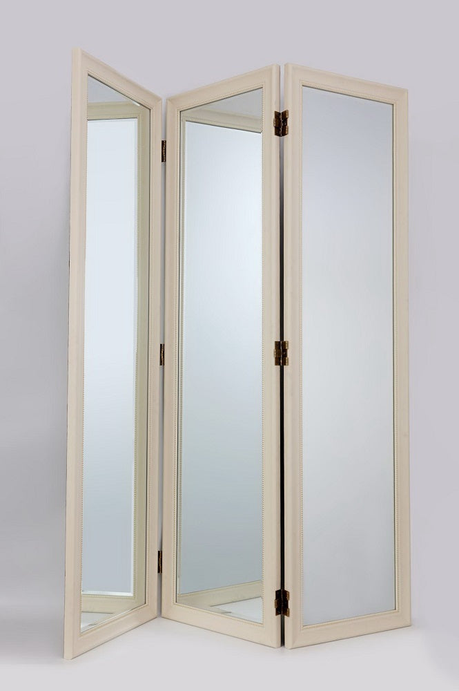 Enhance the look of any space with this beautiful white vintage style full length mirror. With floor mirror has double hinges that allow you to fold the mirror panels to fit any given space from a corner to an open wall. This room divider has a very clean sleek look and the white frame has a gold trim details with bring elegance to the current décor in the room. While best in a bedroom you can place this mirror where you want to get a good last glance of your full attire. This full size floor mirror can be place in a room to open up the space and let the light bounce around the whole room. No matter where you place this room divider it will a pop of glamour to your current décor and will be a perfect addition to your home.