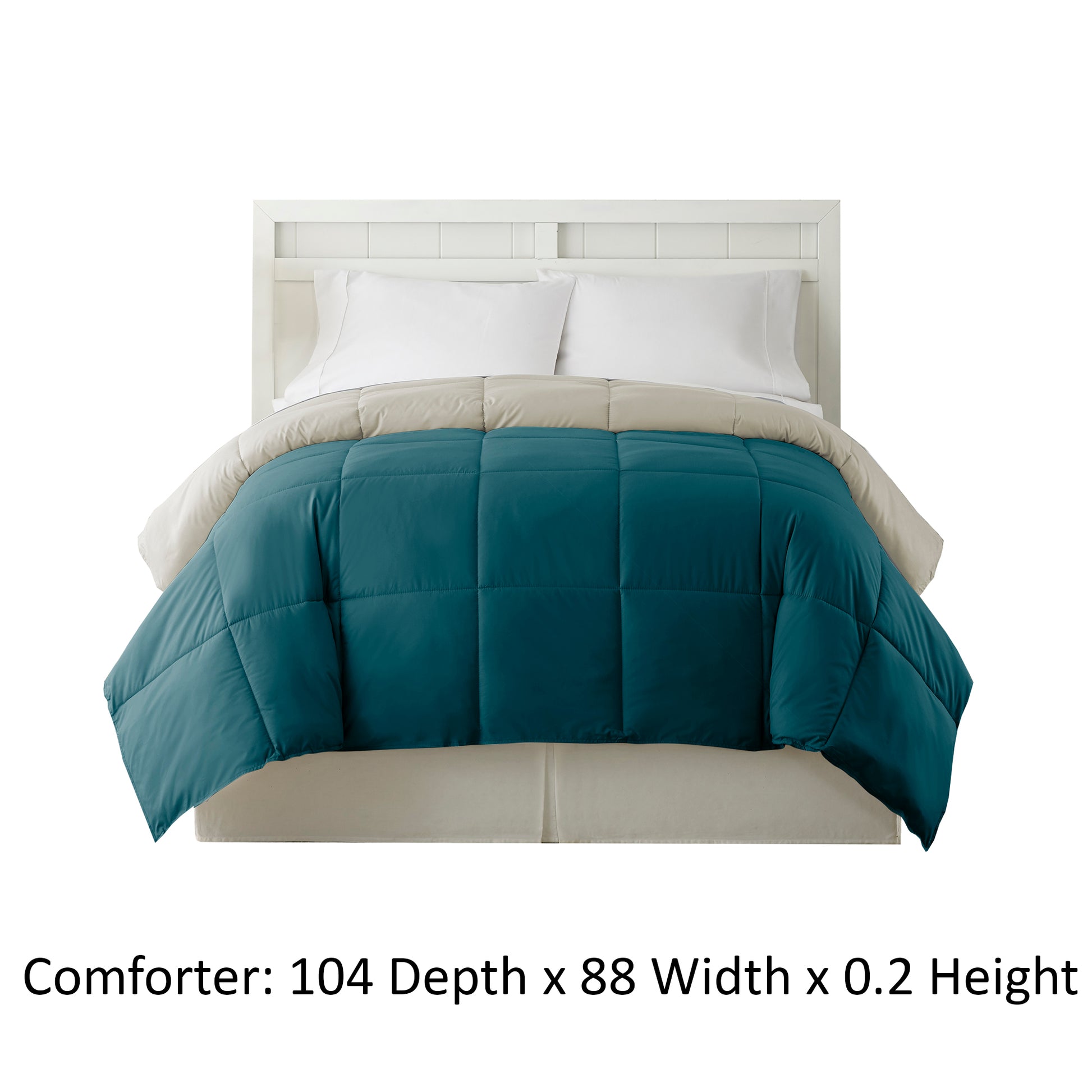 Update your bedroom look in style with the inclusion of this cozy king size comforter. Made from sumptuous and soft down alternative microfiber for a comfortable experience in elegant blue and gray color. It features box quilted details which bestow an appealing look to the comforter. The machine washable feature saves the hassle of dry cleaning while the reversible attribute makes it a versatile and comfortable companion to your bed.