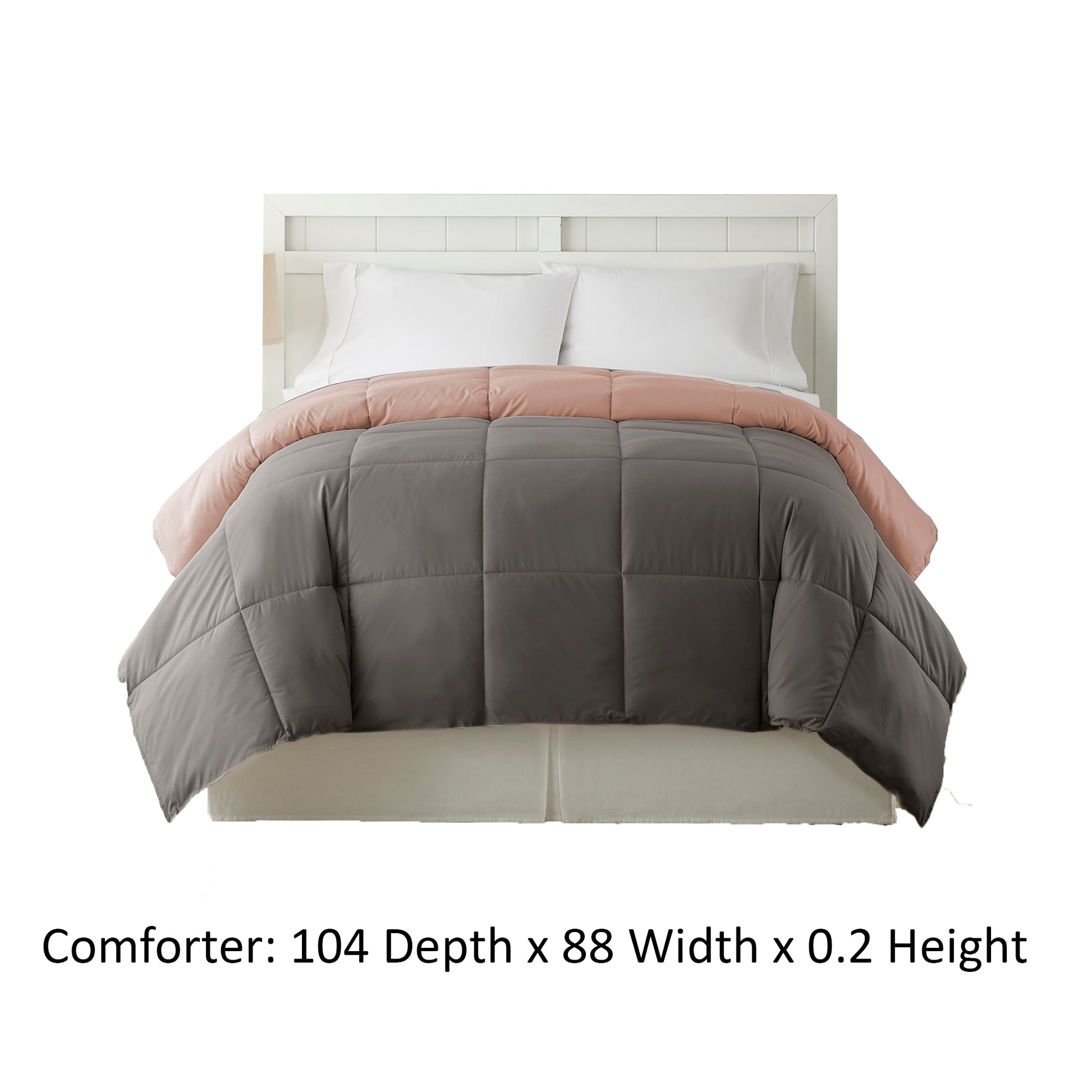 Update your bedroom look in style with the inclusion of this cozy king size comforter. Made from sumptuous and soft down alternative microfiber for a comfortable experience in elegant gray and pink color. It features box quilted details which bestow an appealing look to the comforter. The machine washable feature saves the hassle of dry cleaning while the reversible attribute makes it a versatile and comfortable companion to your bed.
