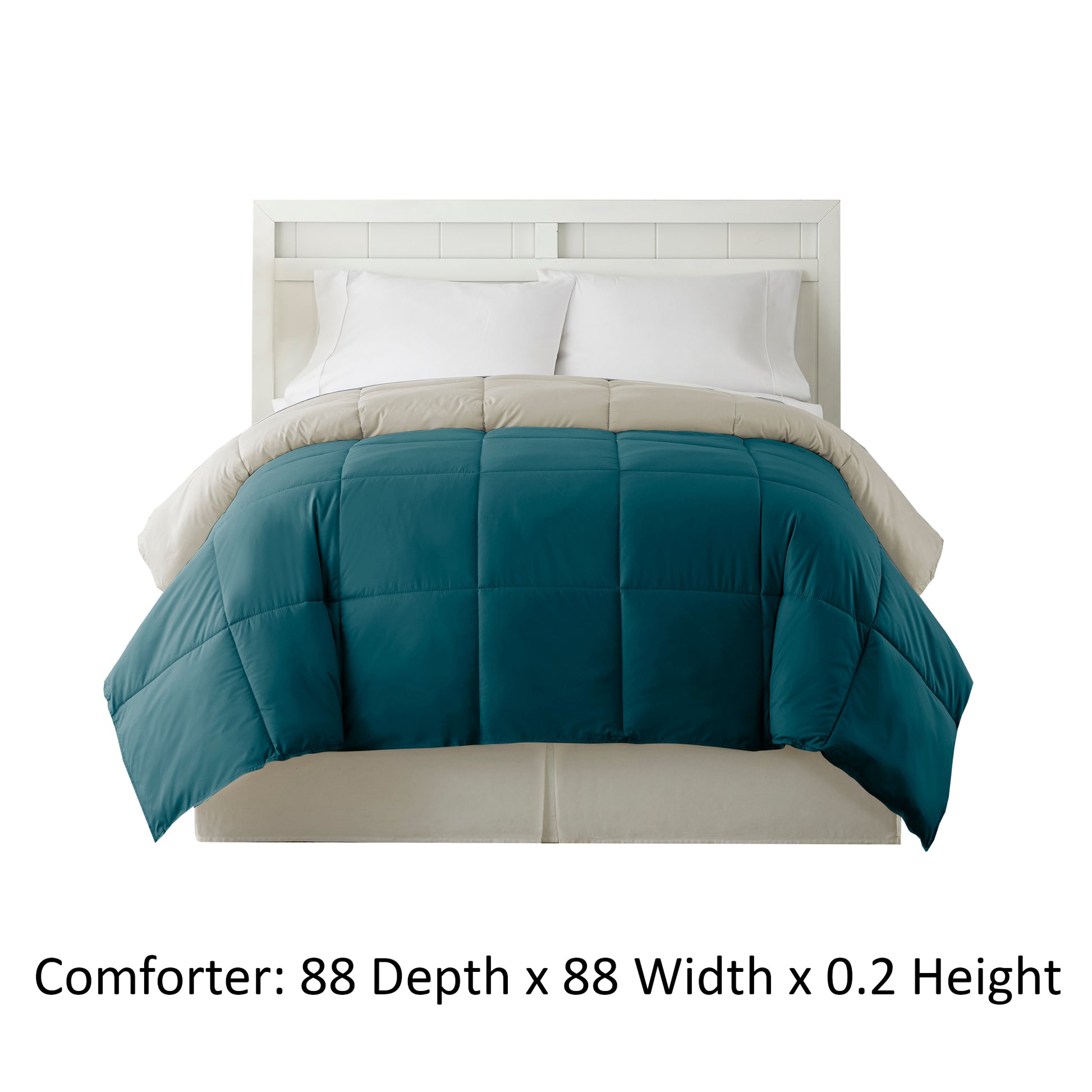 Update your bedroom look in style with the inclusion of this cozy queen size comforter. Made from sumptuous and soft down alternative microfiber for a comfortable experience in elegant blue and gray color. It features box quilted details which bestow an appealing look to the comforter. The machine washable feature saves the hassle of dry cleaning while the reversible attribute makes it a versatile and comfortable companion to your bed